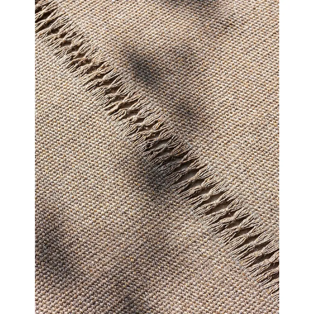 Handmade on a loom using synthetic fiber yarn, the TRIPTYQUE collection offers the highest outdoor performance, while maintaining a soft and elegant aspect. This collection of outdoor rugs is characterized by the subdivision into three identical portions, punctuated by the harmonic alternation between the yarn and the warp to obtain a motif that evokes the sartorial hem stitches. TRIPTYQUE is available in three different colors, Stone, Natural and Brick. The intertwined fringes that close the warp of the rugs always characterize the 3-meter side.