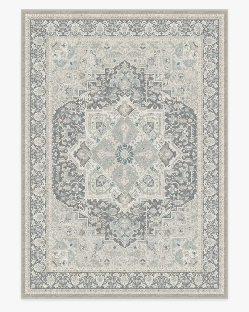 The Hendesi Heriz Abalone Rug is inspired by classic Persian-style rugs. Tinted in neutral colors, this rug features an oversized medallion in the center surrounded by ornate borders.