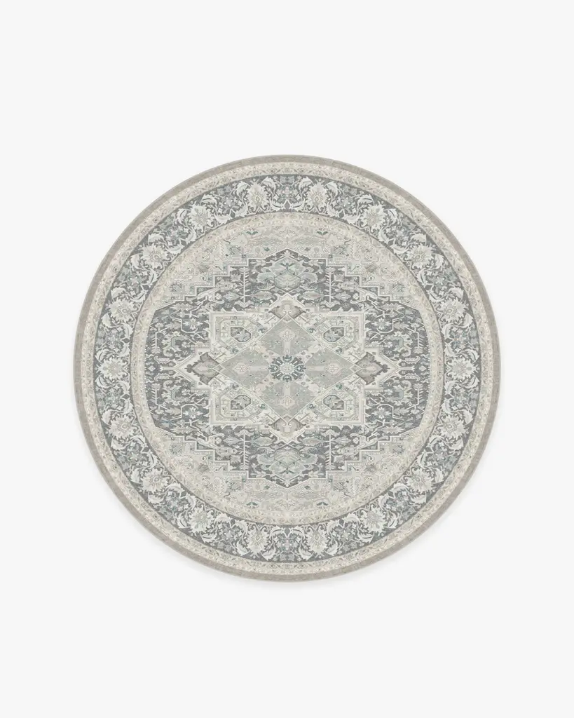 The Hendesi Heriz Abalone Rug is inspired by classic Persian-style rugs. Tinted in neutral colors, this rug features an oversized medallion in the center surrounded by ornate borders.