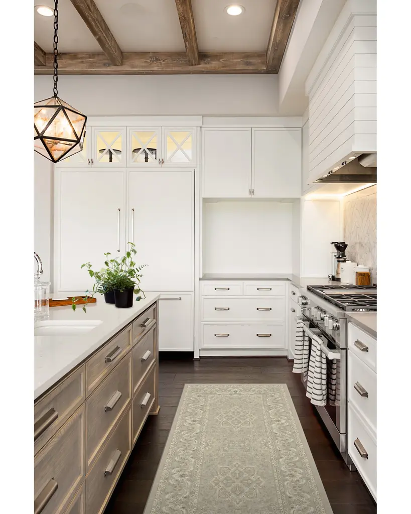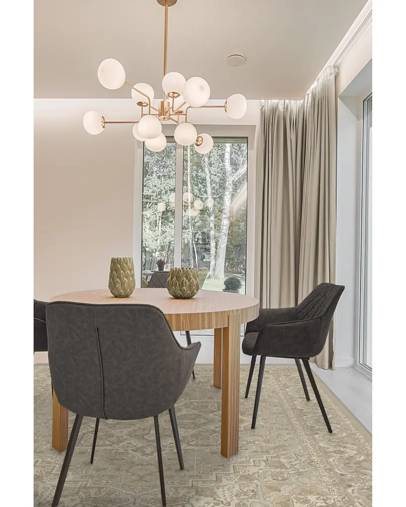 Bring home the old-world charm of Persian-style rugs with our Hendesi Heriz Cream Rug. Featuring a bordered design with a central geometric medallion, this rug blends a classic theme with a contemporary palette of cream and taupe on a natural linen background. Water-resistant, stain-resistant, and machine-washable.