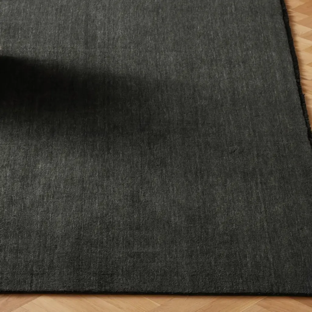 The artistry is in the details of this double-back handloomed rug. Made of soft wool for a cozy feel and finished with viscose fringe at each end for a bit of sheen. Rug is dyed piece by piece by skilled artisans to create charcoal abrashbeautiful color variation that runs horizontally across the piece. Arabic for "mottled," abrash makes the rug look perfectly lived in from the start. CB2 exclusive.How will it look in your room? 12"x12" rug samples are available in stores for a fee refundable upon return of the sample.