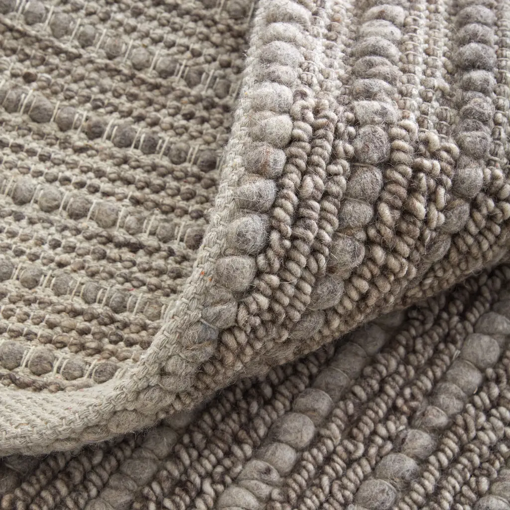 Collection: Herrick Colors: Taupe, Ivory, Dark Red Construction: Hand Woven Material: Face: 100%Wool / Warp: Cotton Pile: Low Pile Pile Height: 0.6" Styles: Contemporary,Casual Backing: Cotton Made In: India Thickness: 0.6" Price Range: $$$$$ (Affordable)