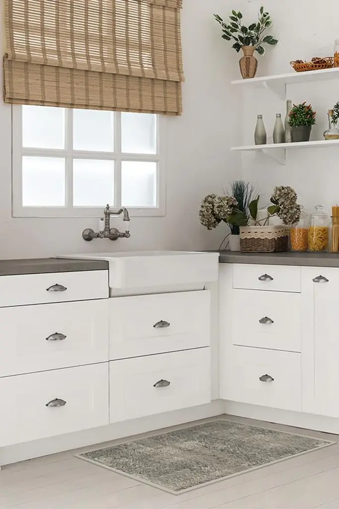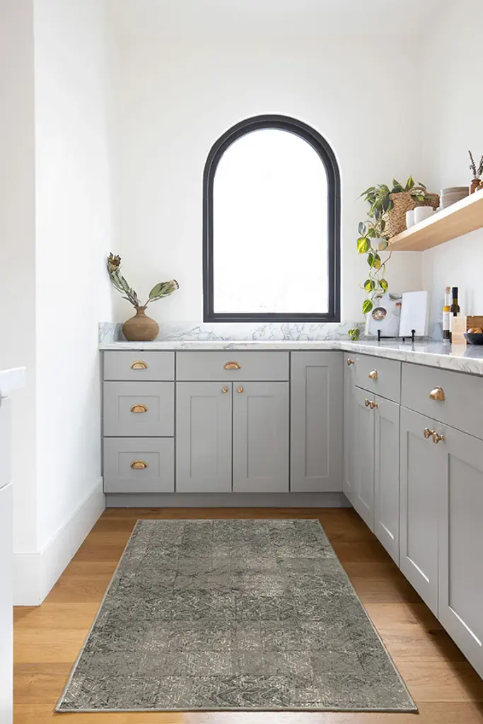 Our globally inspired Herringbone Batik Ash Grey Rug is both classic and timeless. Featuring a patchwork design, this rug is displayed in a range of neutral shades: dove grey, fossil, and bone with a pop of soft black. This neutral-colored rug will easily complement an array of colors and furnishings.