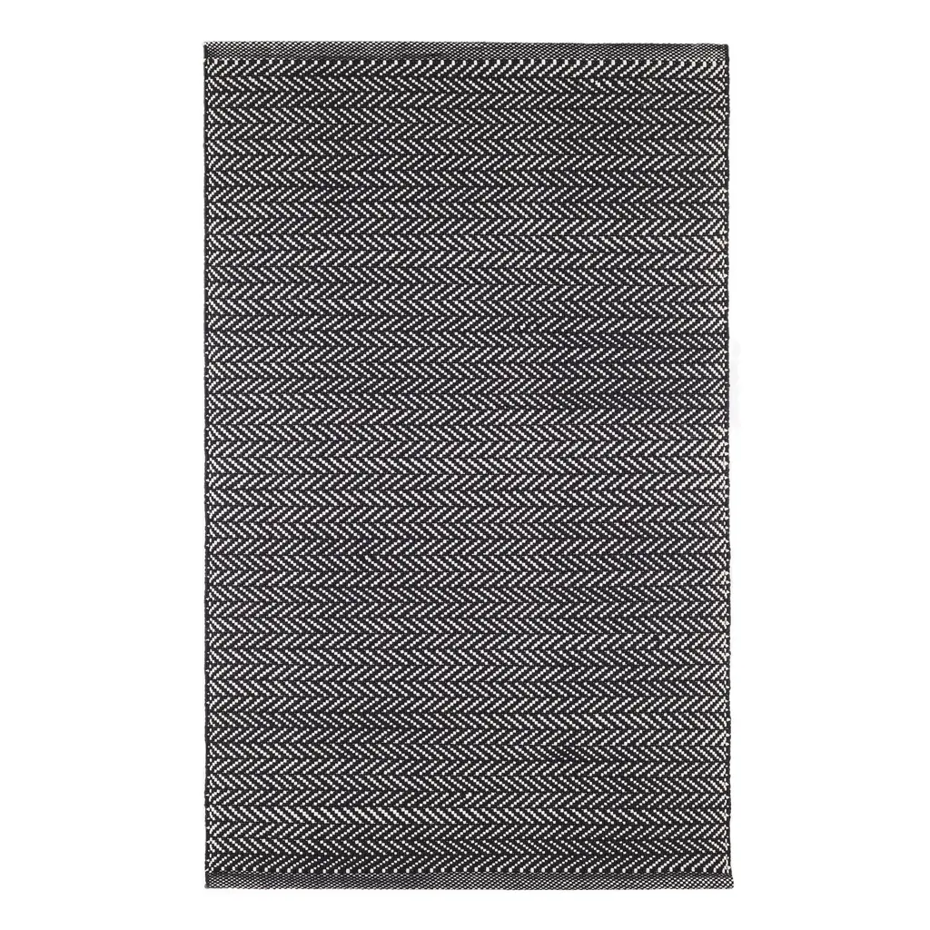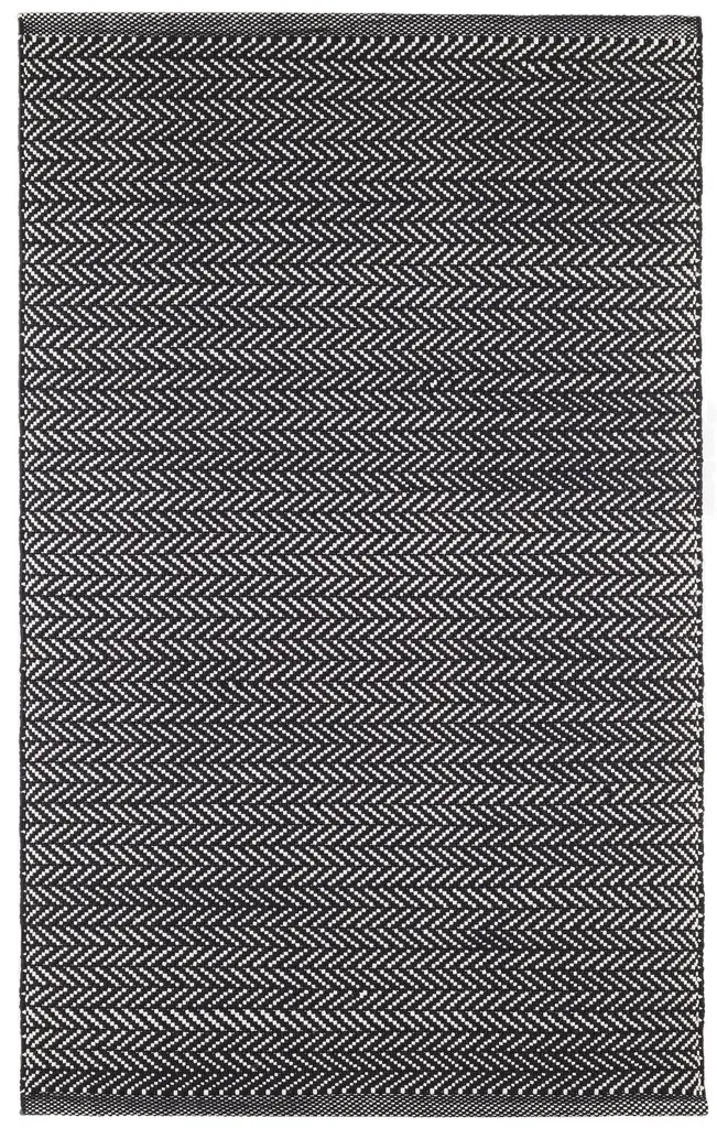 Herringbone Handwoven Cotton Rug | Black - 2' X 3'