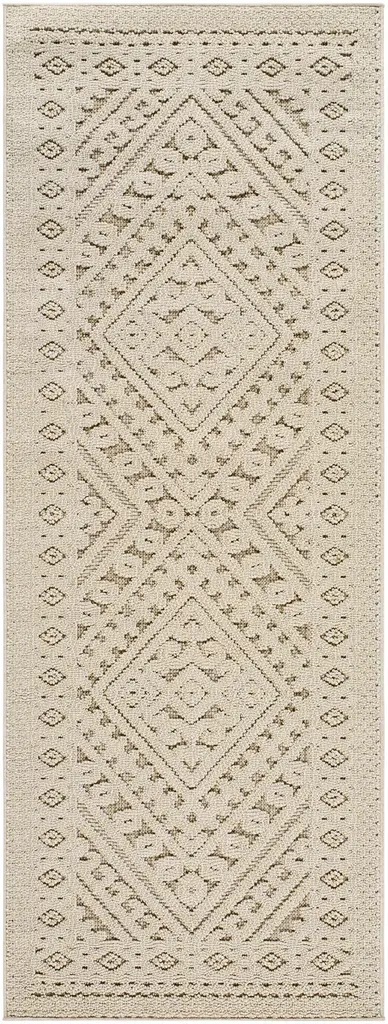 Collection: Hibah Colors: Beige, Dark Brown, Medium Brown, Medium Gray Construction: Machine Woven Material: 100% Polypropylene Pile: Medium Pile Pile Height: 0.35" Styles: Contemporary Outdoor Safe: Yes Made In: Turkey Thickness: 0.39" Price Range: $$$$$ (Affordable)