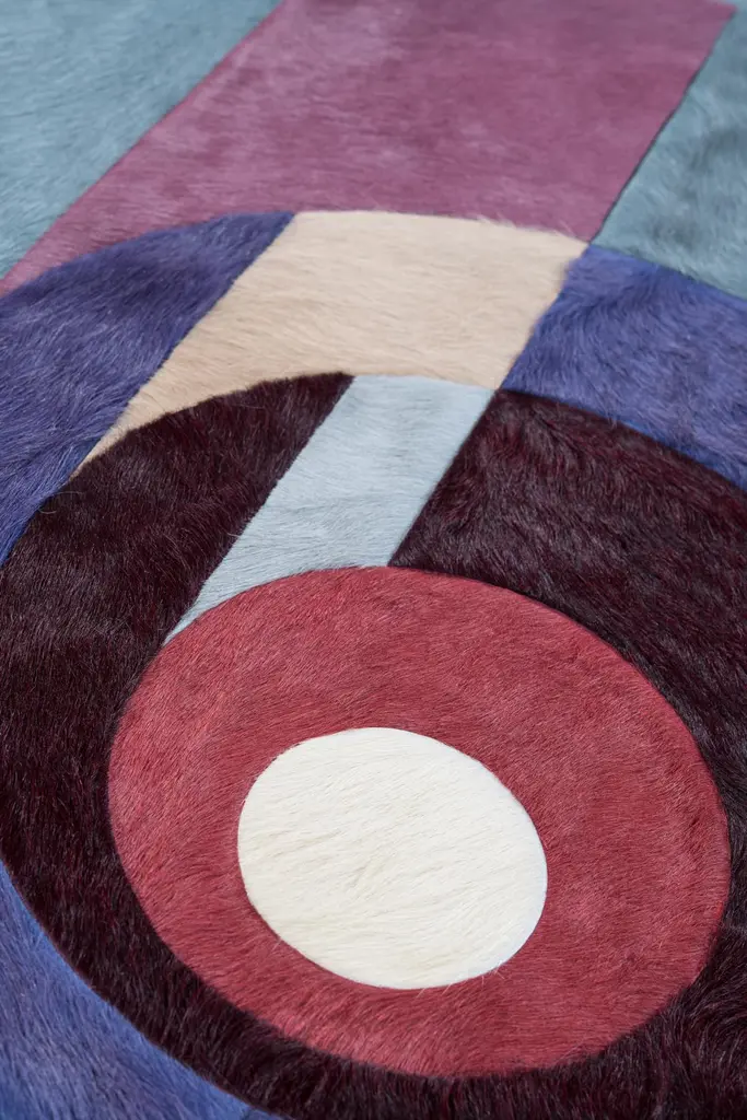 This Prisma Hide Rug was designed in collaboration between Kyle Bunting and Interior Designer Amy Lau in their second collection. About the Design: Influences from the mid-century Op Art movement can be experienced in Prisma, the second collection with esteemed designer Amy Lau. Variations of compositional scheme and palette alter perceptions of depth, direction, and mood, creating unique moments based on placement and hue. Materials & Assembly: This rug will be made from the finest French Charolais leather that has been dyed in Italy before being imported to the USA where it will be assembled by hand by artisans. Non-Slip Backing: This item comes with a proprietary non-slip backing which eliminates the need for a rug pad. Design Colors:Aluminum;Birch;Blush;Cream;Periwinkle;Pinot;Platinum;Violet