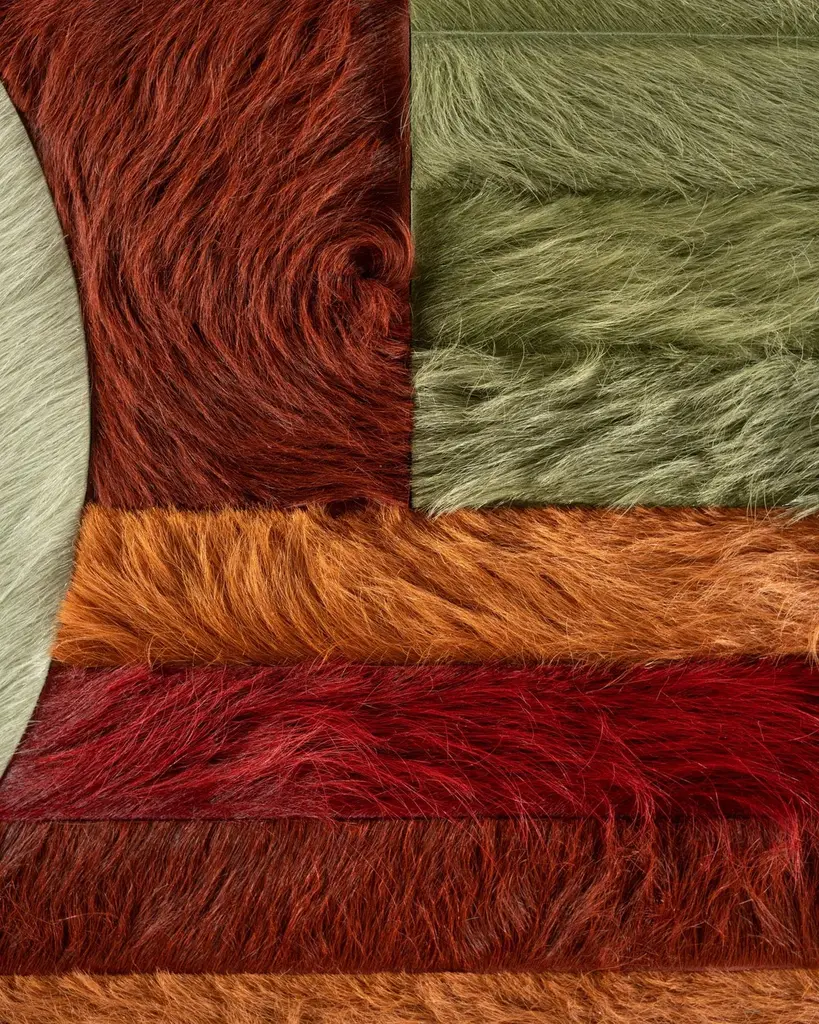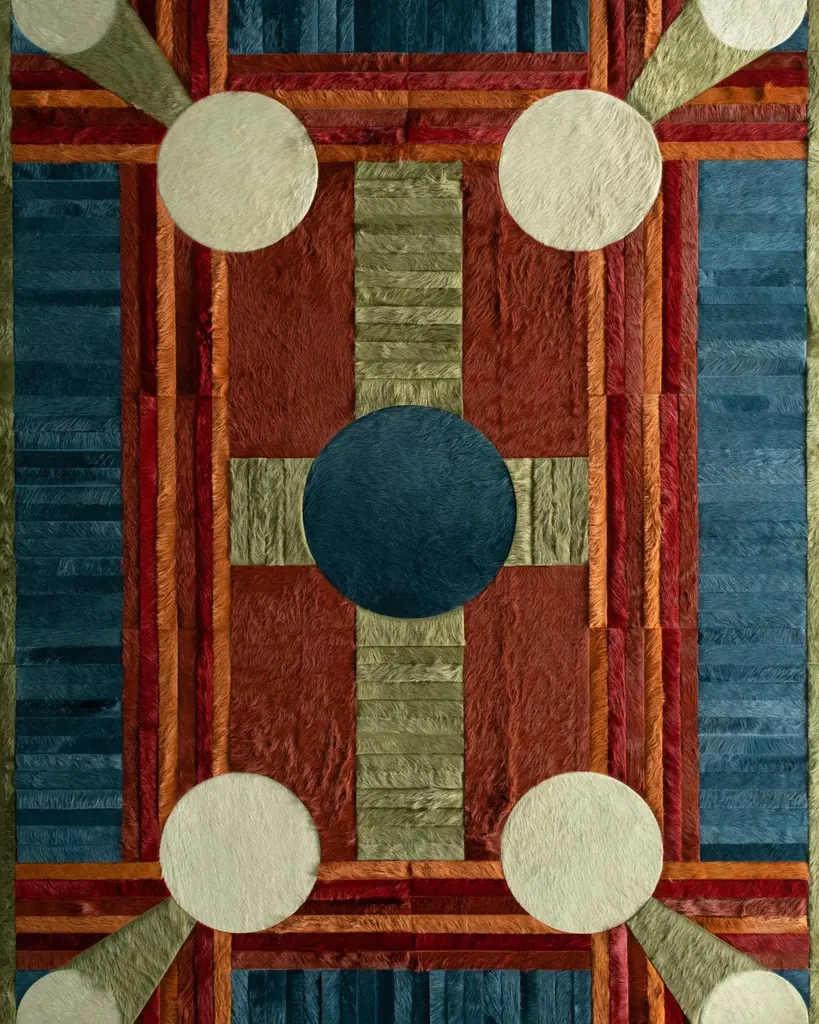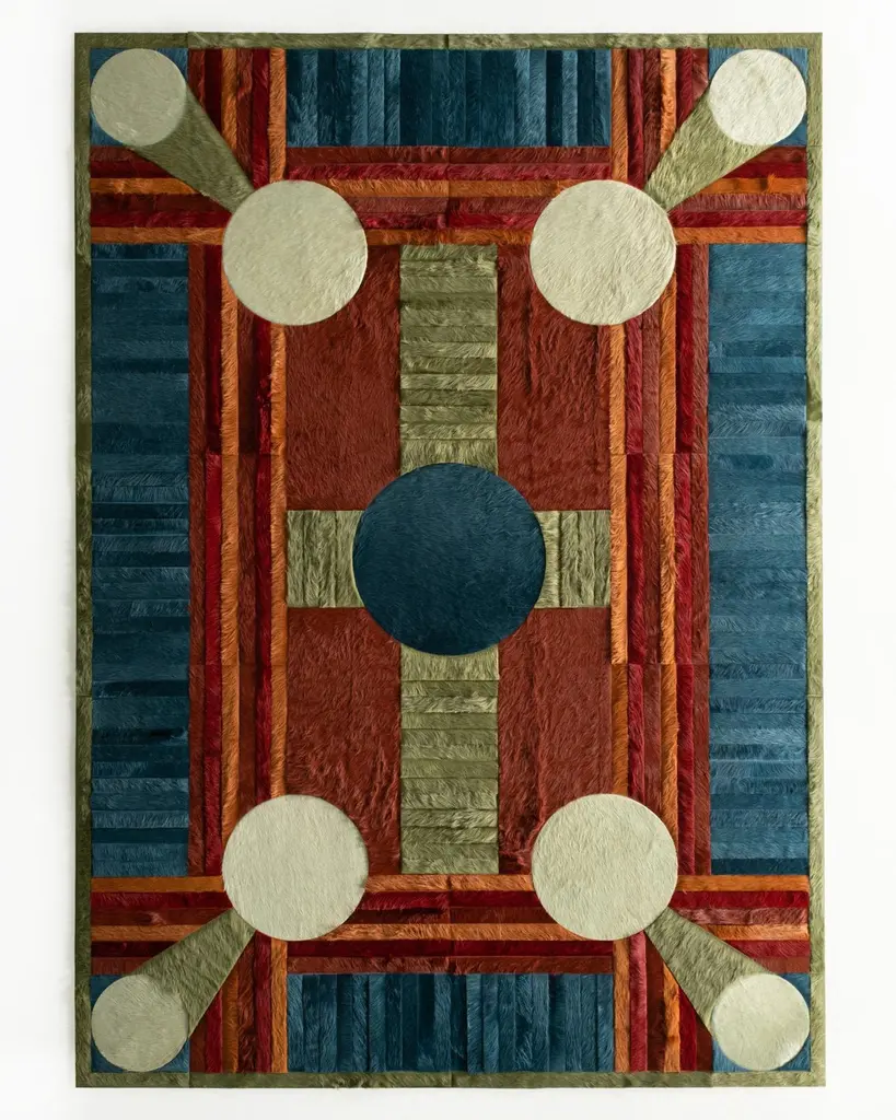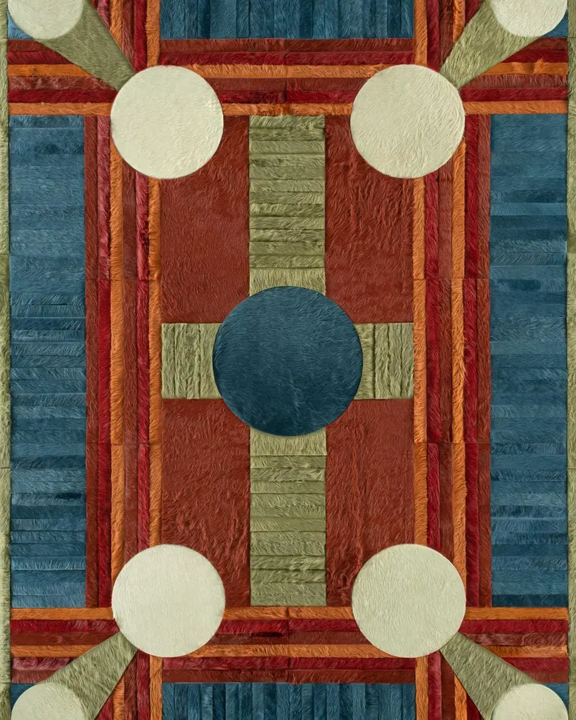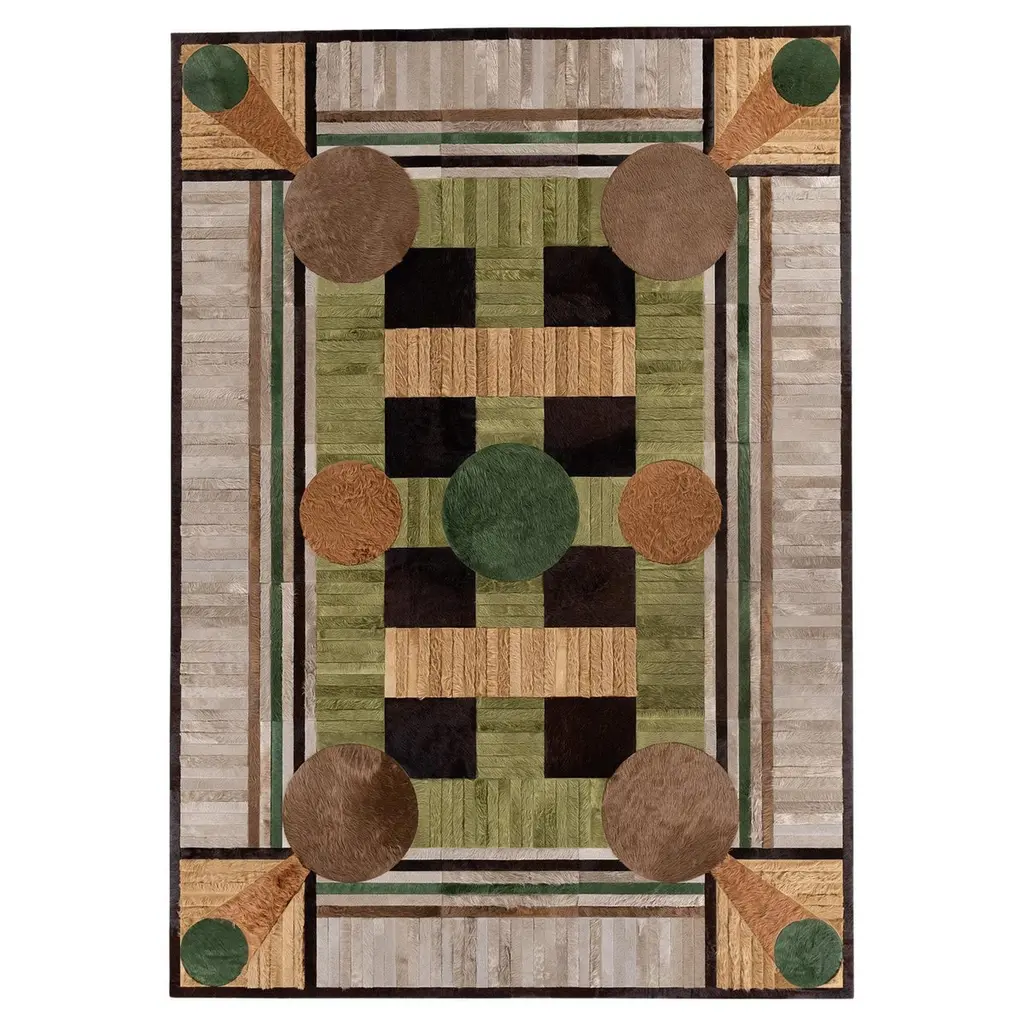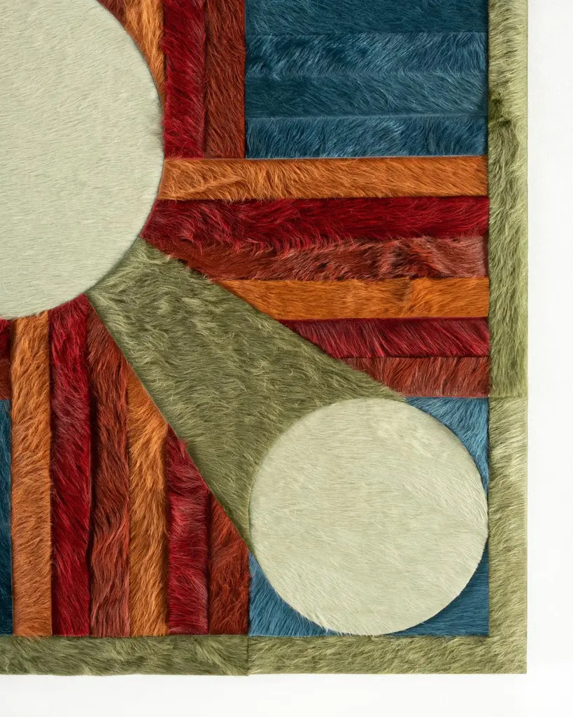 This Atlas Hide Rug was designed in collaboration between Kyle Bunting and photographer Douglas Friedman. About the Design: Atlas, a Collection created in collaboration with photographer Douglas Friedman is a reflection of the vast, soulful terrain that surrounds Marfa, Texas. Balancing minimalism against a playful and lavish aesthetic, Atlas is a colorful, contemporary collection dramatically displayed in Douglas’ eclectic Texas retreat, The Friedman Ranch. Materials & Assembly: This rug will be made from the finest French Charolais leather that has been dyed in Italy before being imported to the USA where it will be assembled by hand by artisans. Non-Slip Backing: This item comes with a proprietary non-slip backing which eliminates the need for a rug pad. Design Colors:Celery;Lead;Moss;Rose;Rust;Tobacco