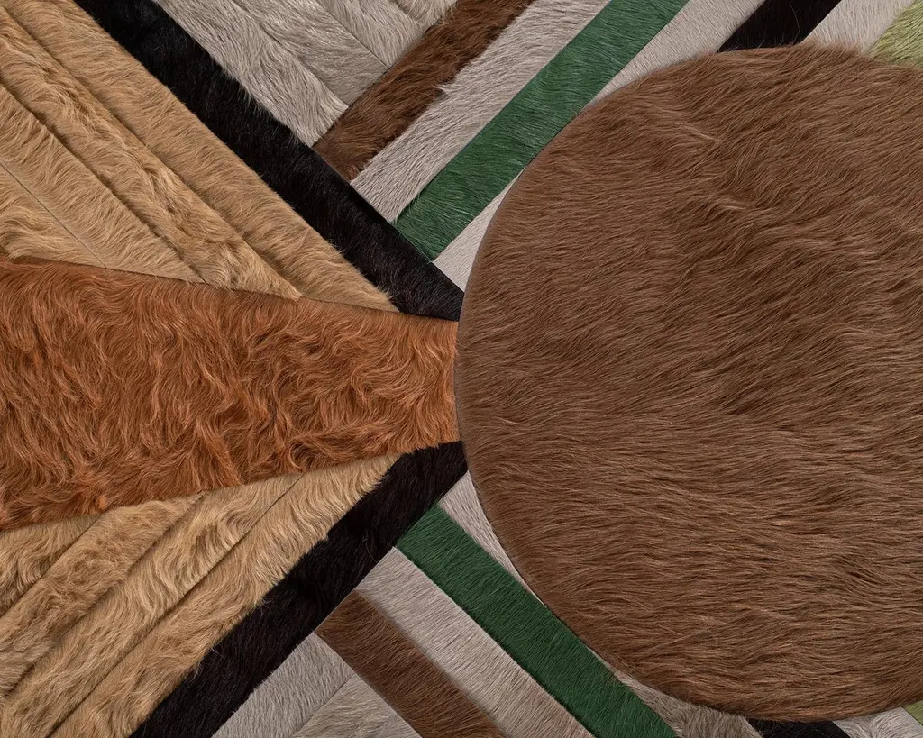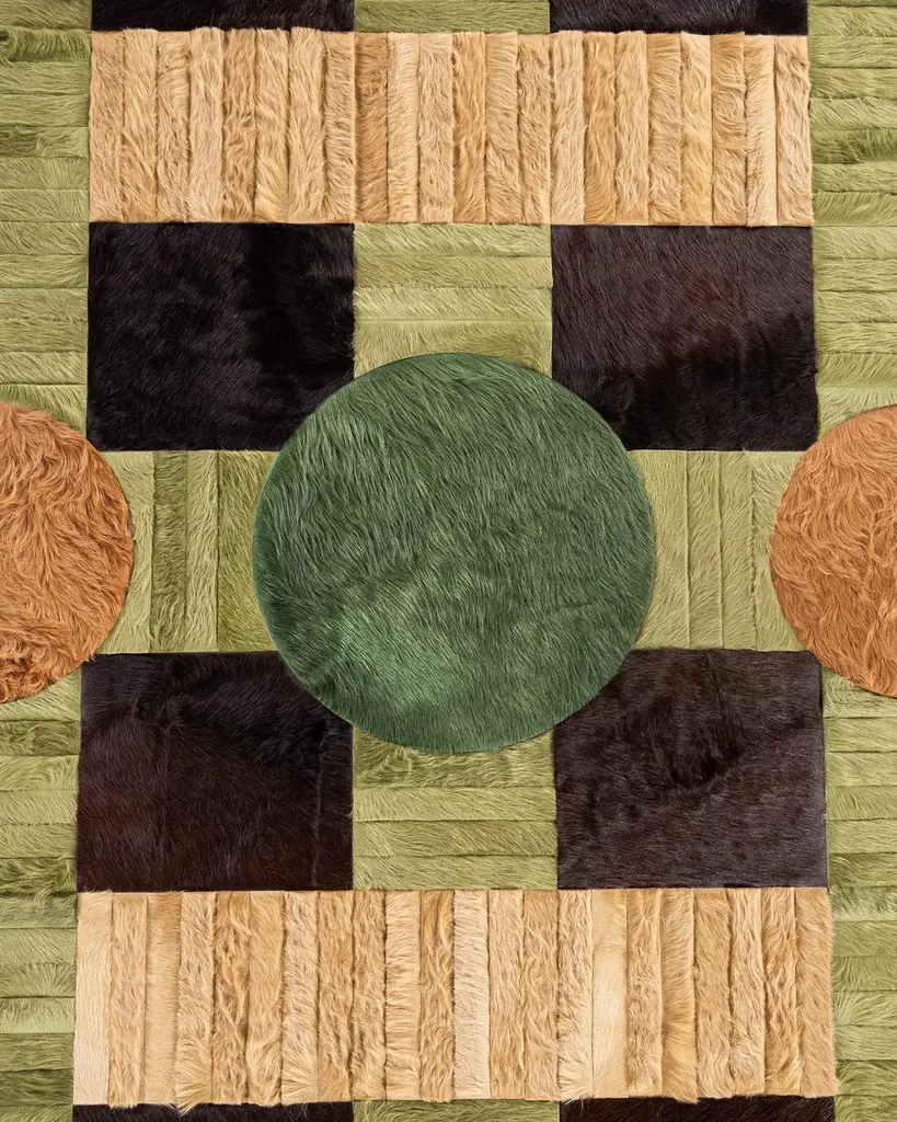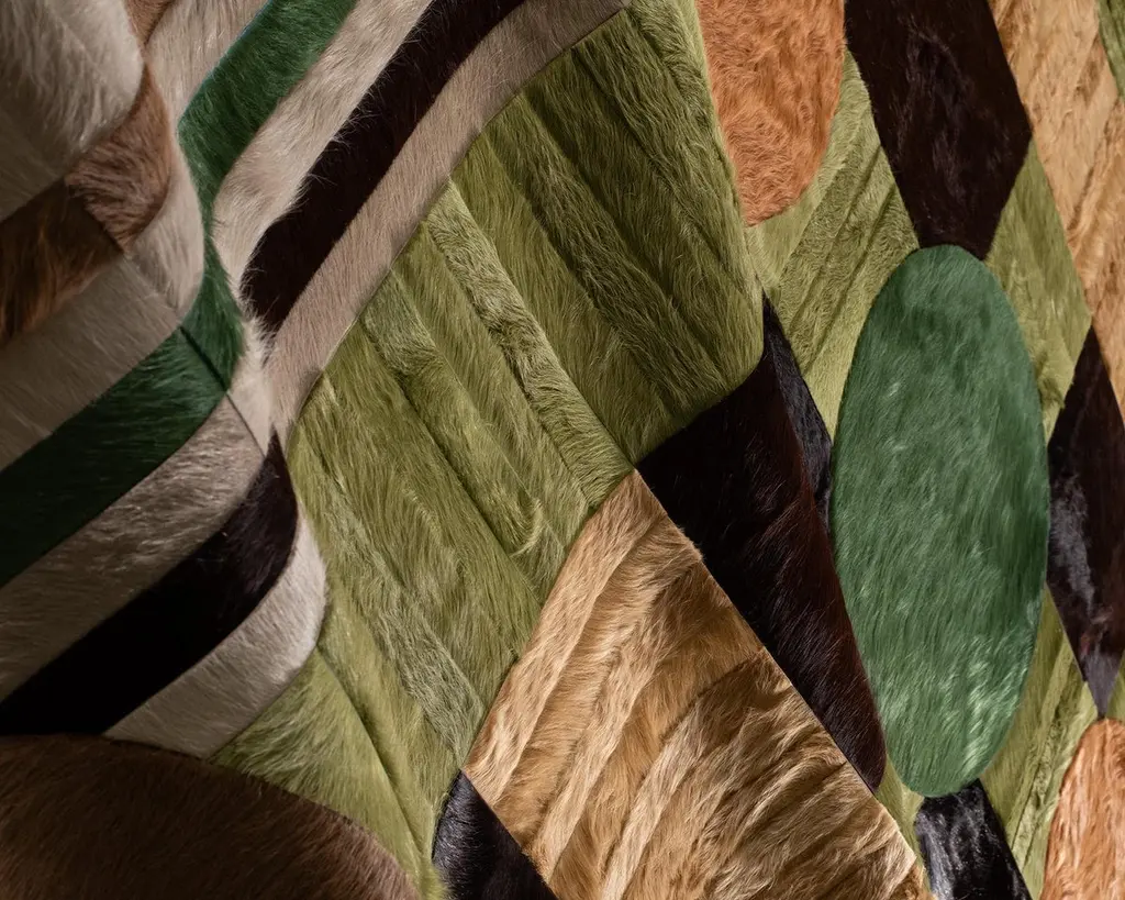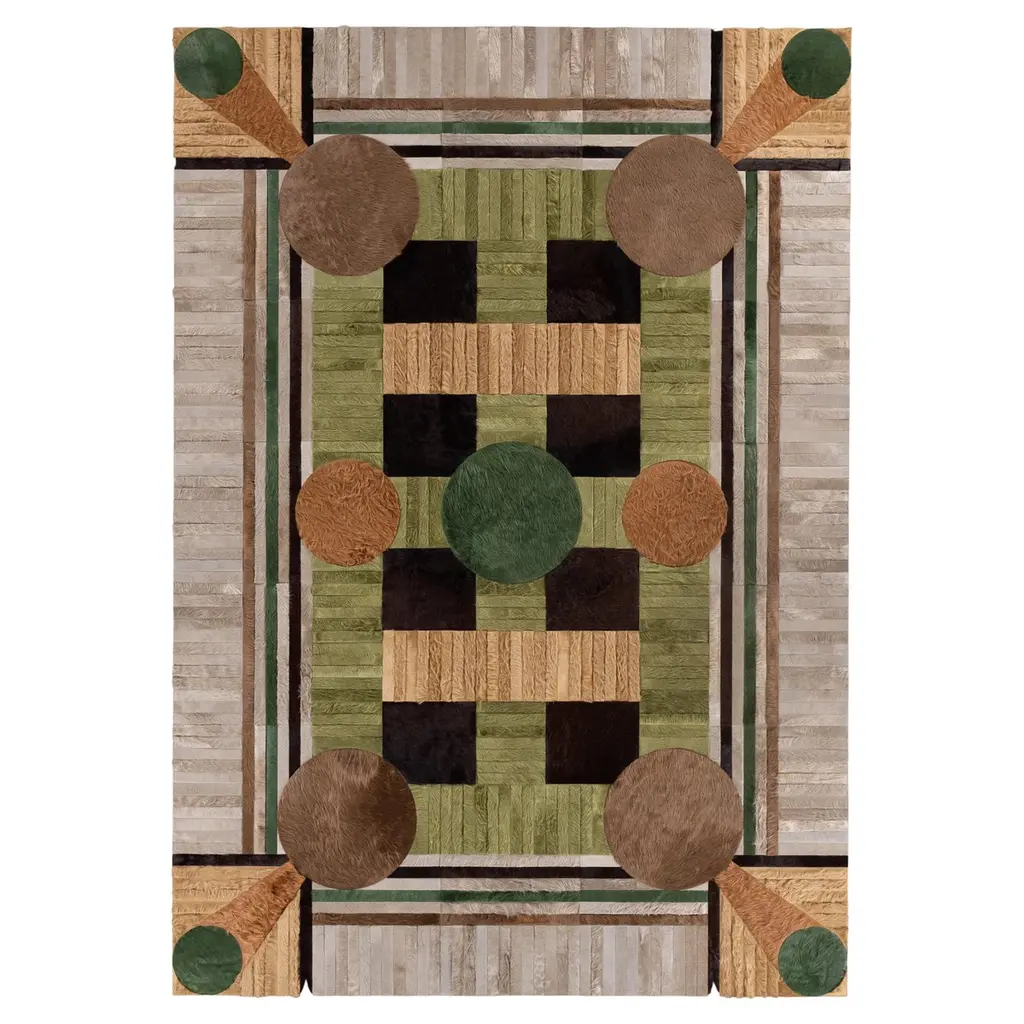 This Atlas Hide Rug was designed in collaboration between Kyle Bunting and photographer Douglas Friedman. About the Design: Atlas, a Collection created in collaboration with photographer Douglas Friedman is a reflection of the vast, soulful terrain that surrounds Marfa, Texas. Balancing minimalism against a playful and lavish aesthetic, Atlas is a colorful, contemporary collection dramatically displayed in Douglas’ eclectic Texas retreat, The Friedman Ranch. Materials & Assembly: This rug will be made from the finest French Charolais leather that has been dyed in Italy before being imported to the USA where it will be assembled by hand by artisans. Non-Slip Backing: This item comes with a proprietary non-slip backing which eliminates the need for a rug pad. Design Colors:Elm;Maple;Mink;Moss;Oak;Pine;Taupe