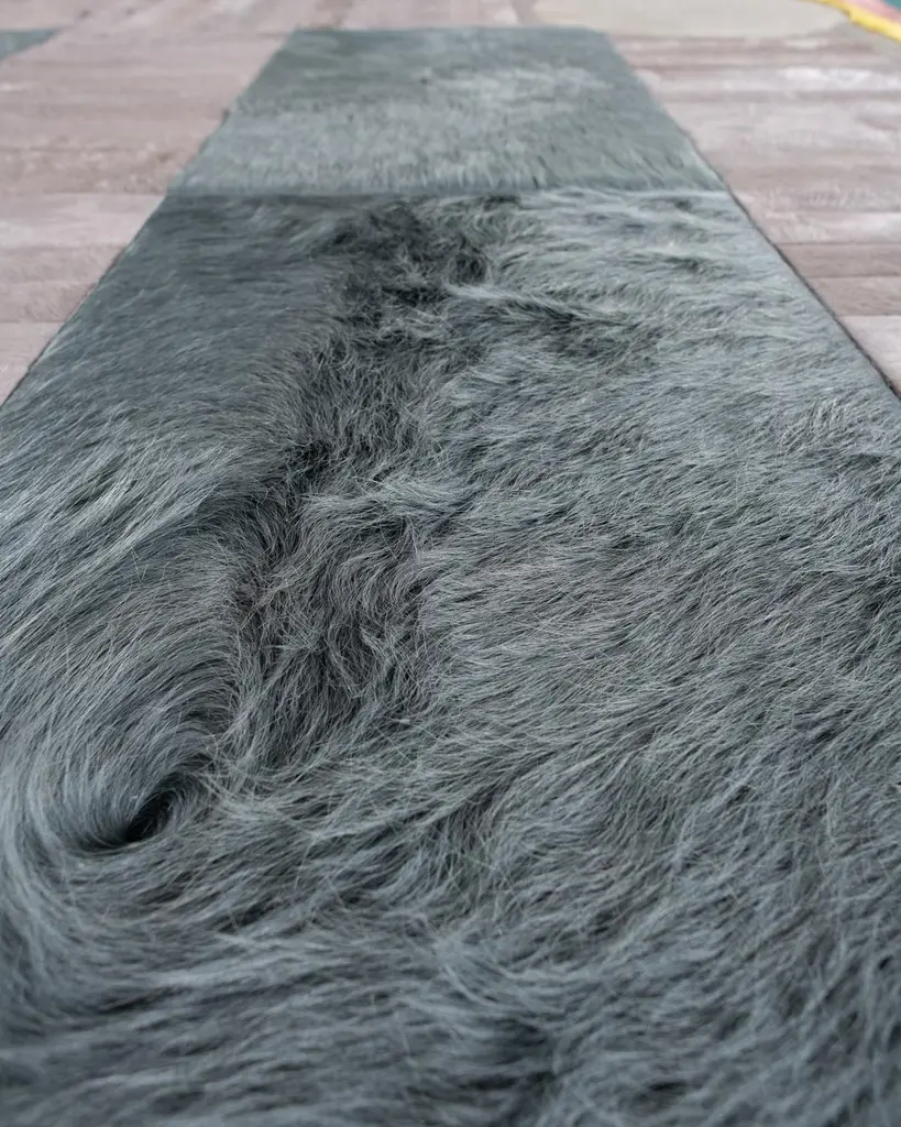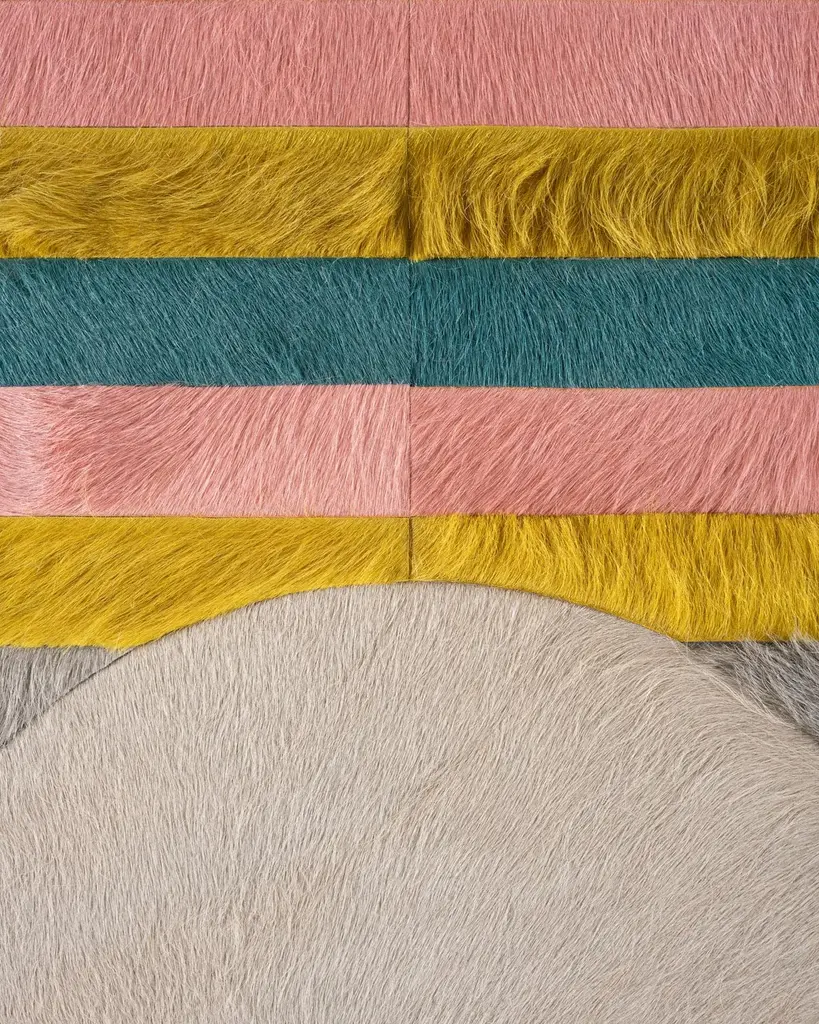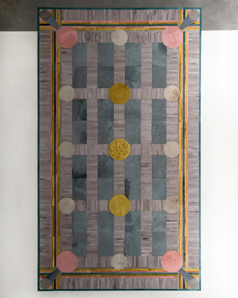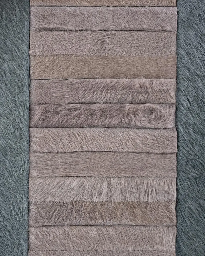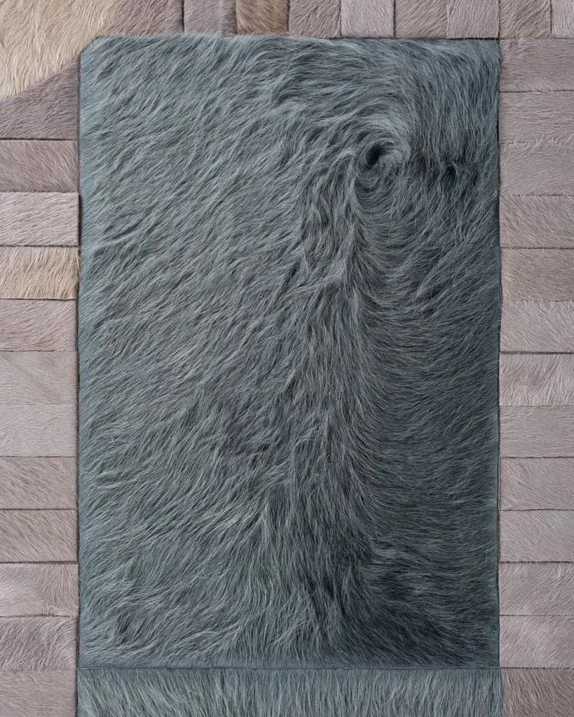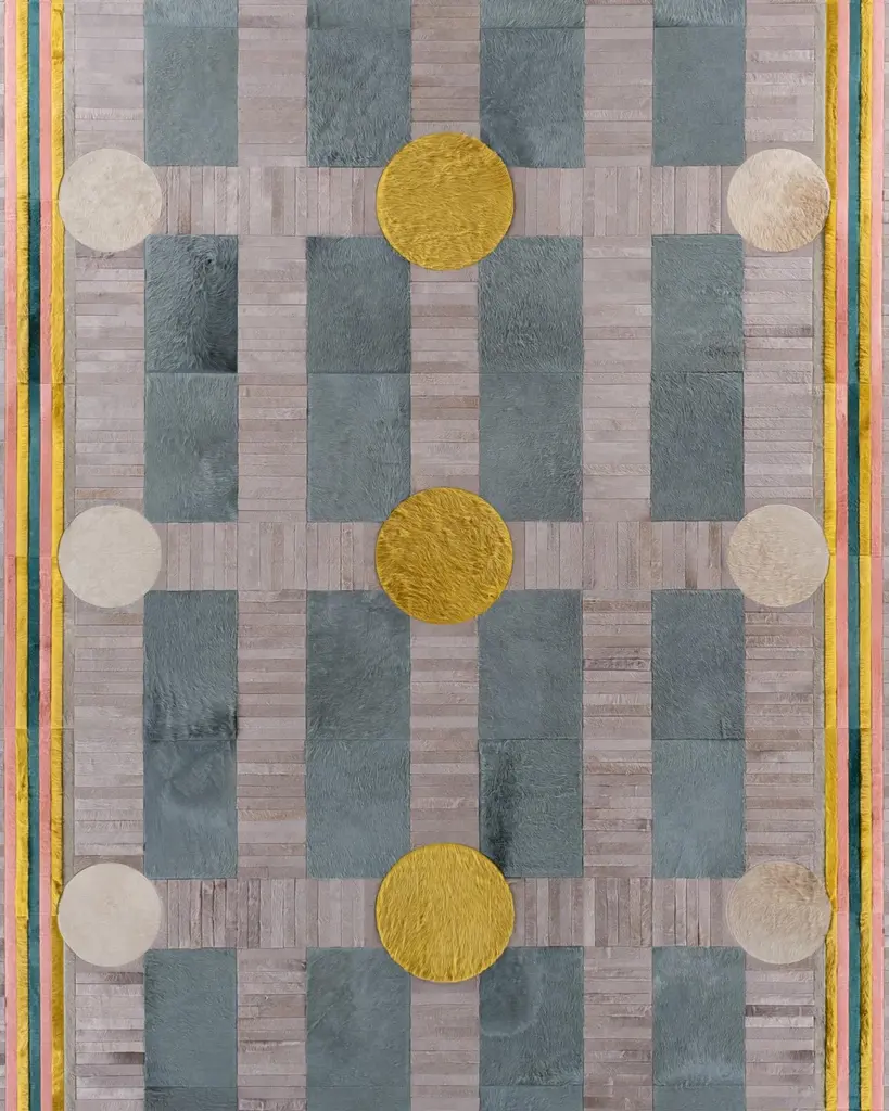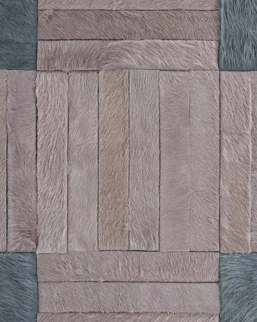 This Atlas Hide Rug was designed in collaboration between Kyle Bunting and photographer Douglas Friedman. About the Design: Atlas, a Collection created in collaboration with photographer Douglas Friedman is a reflection of the vast, soulful terrain that surrounds Marfa, Texas. Balancing minimalism against a playful and lavish aesthetic, Atlas is a colorful, contemporary collection dramatically displayed in Douglas’ eclectic Texas retreat, The Friedman Ranch. Materials & Assembly: This rug will be made from the finest French Charolais leather that has been dyed in Italy before being imported to the USA where it will be assembled by hand by artisans. Non-Slip Backing: This item comes with a proprietary non-slip backing which eliminates the need for a rug pad. Design Colors:Kelp;Lagoon;Oink;Platinum;Steel;Stone;Taupe