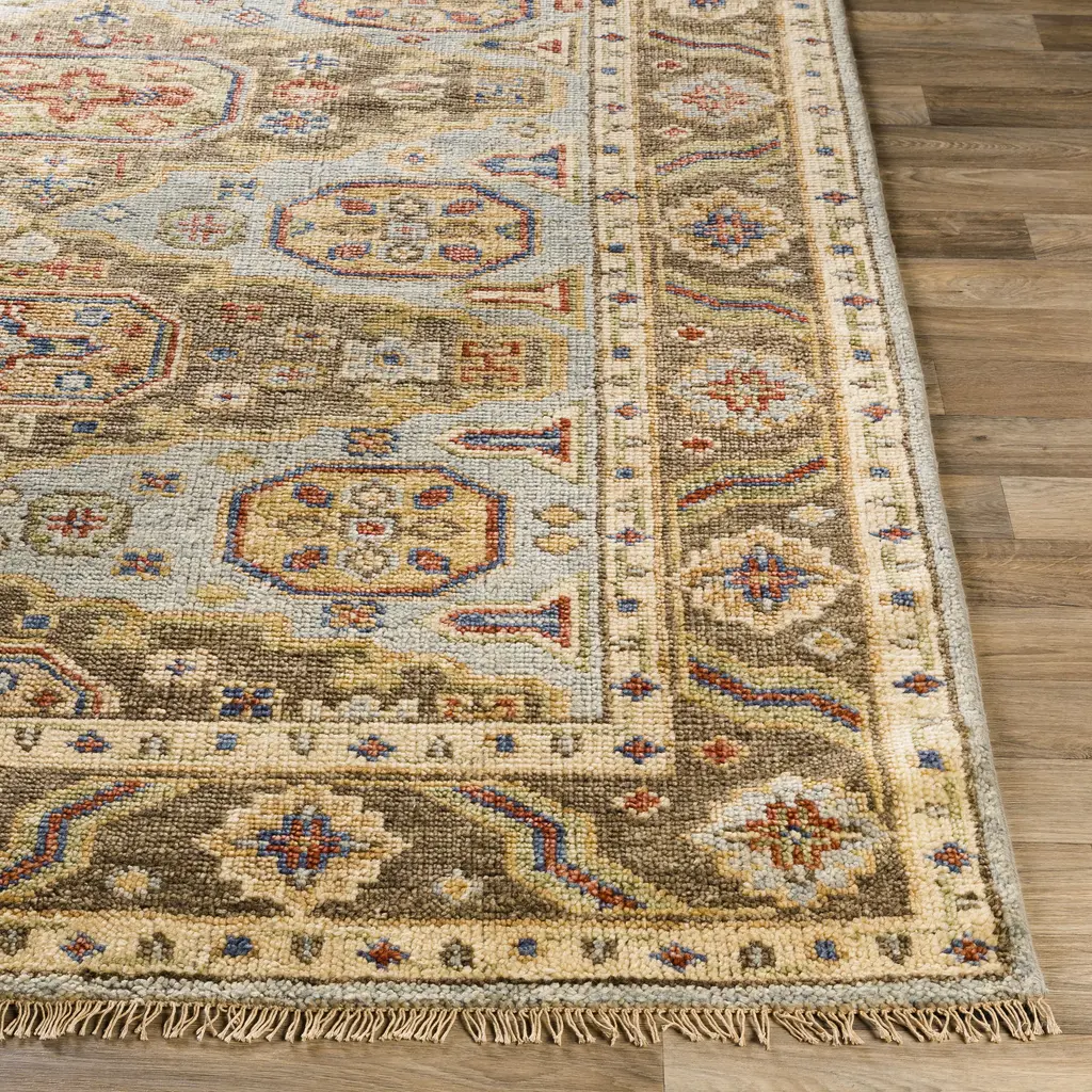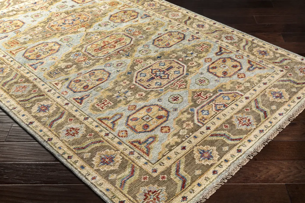The Hiemo Collection showcases traditional inspired designs that exemplify timeless styles of elegance, comfort, and sophistication. With their hand knotted construction, these rugs provide a durability that can not be found in other handmade constructions, and boasts the ability to be thoroughly cleaned as it contains no chemicals that react to water, such as glue. Made with Wool in India, and has Low Pile. Spot Clean Only, One Year Limited Warranty.
