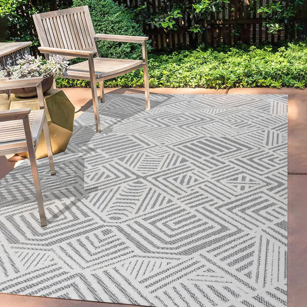 High-Low Pile Art Deco Geometric Indoor/outdoor White/black 5Ftx8ft Area Rug