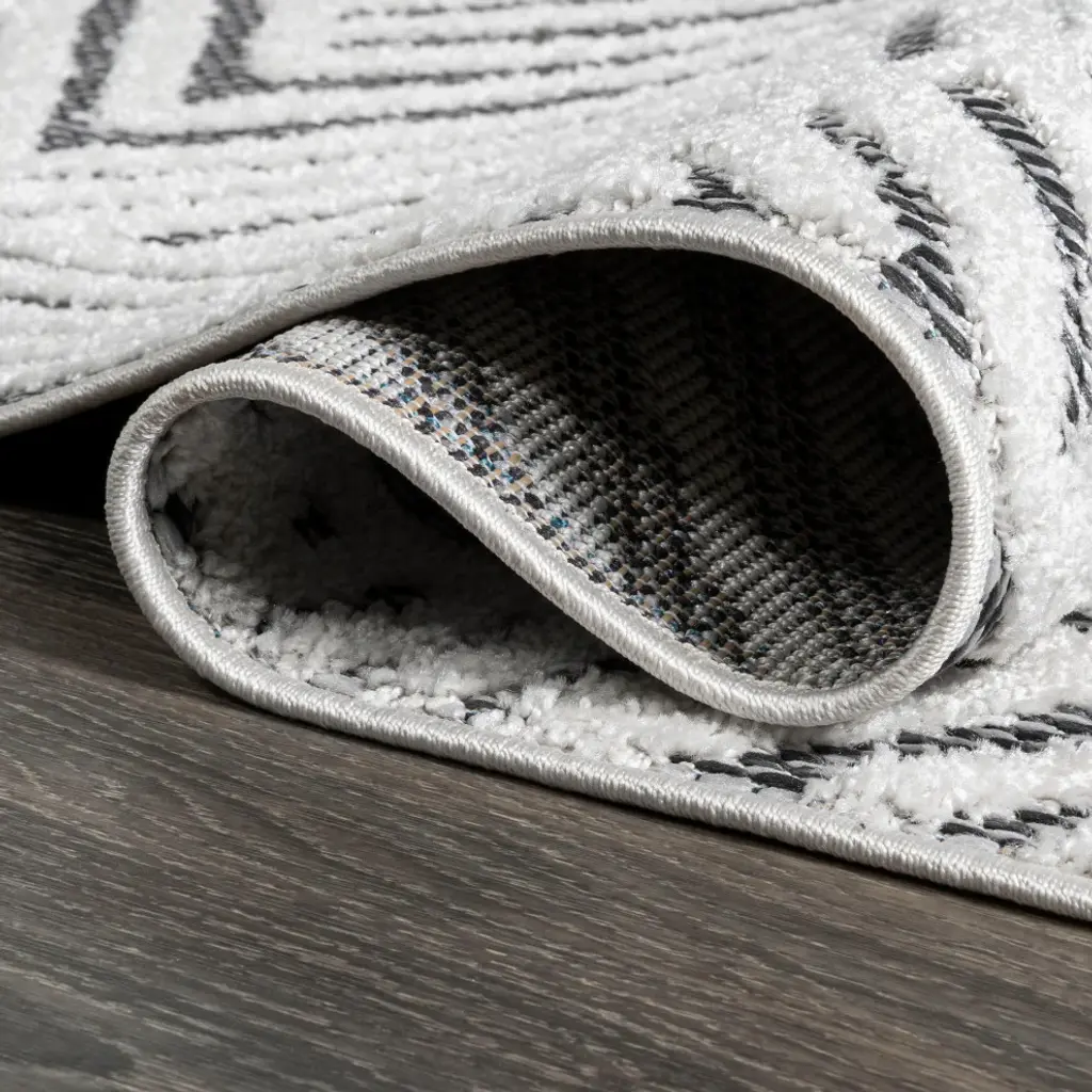 High-Low Pile Art Deco Geometric Indoor/outdoor White/black 8Ftx10ft Area Rug