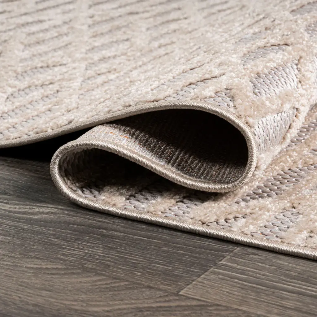 High-Low Pile Moroccan Diamond Modern Indoor/outdoor Beige 5Ft.x8' Area Rug