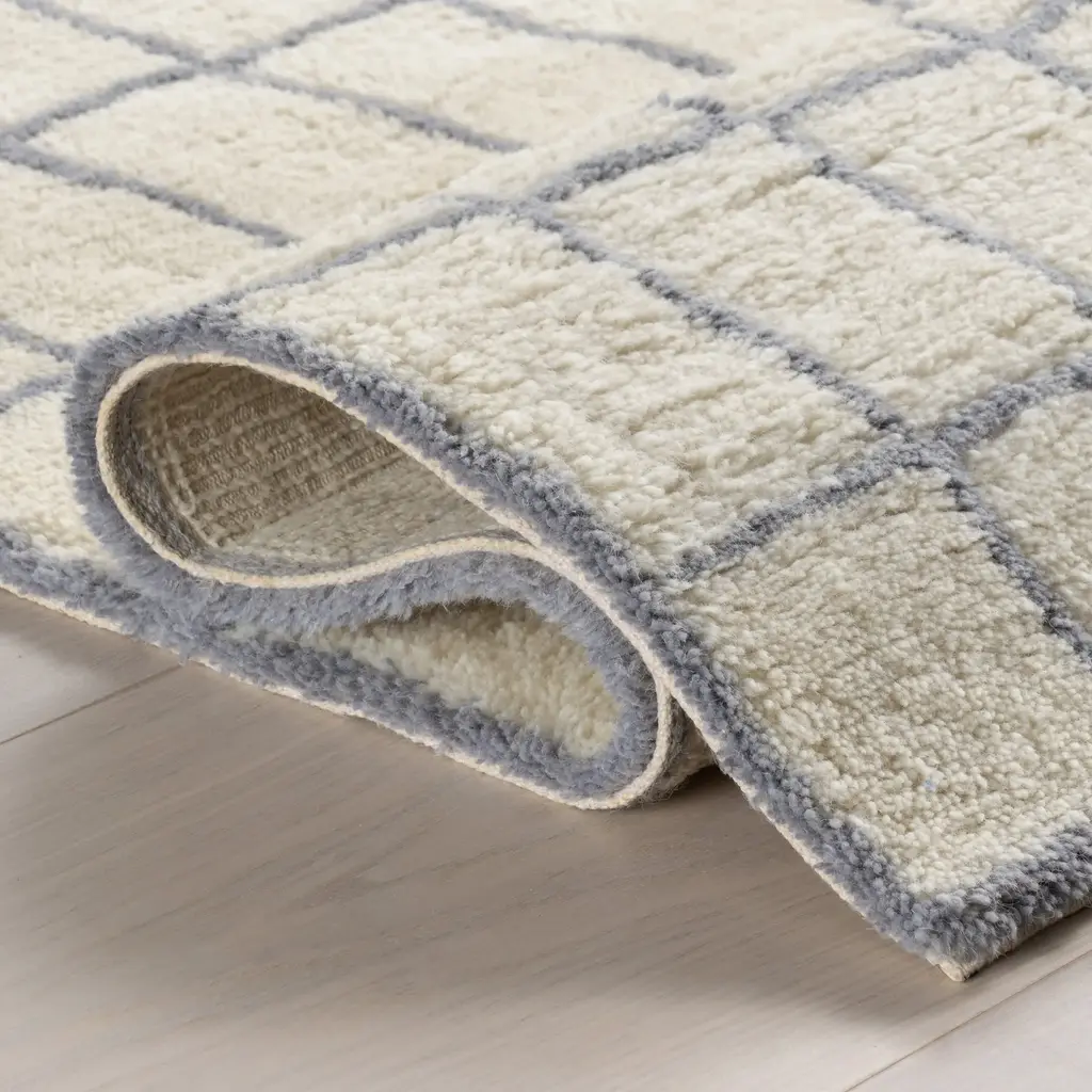 A bit organic and a touch time-worn, the Highlands Checked Rug is a simple, chic way to add a little statement to your space. This design features a warm neutral background and wool construction paired with a contrasting check for a look and feel that's a step above.