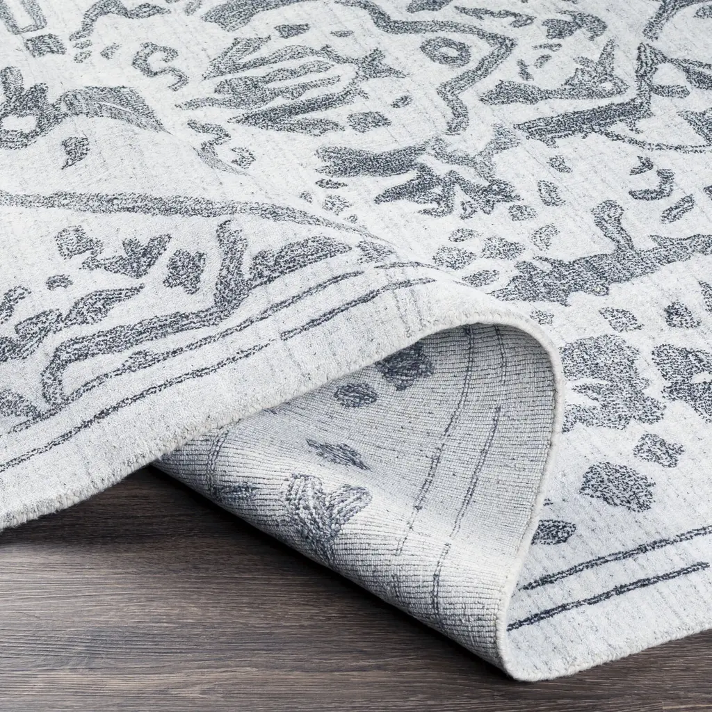 The Hightower Collection showcases traditional inspired designs that exemplify timeless styles of elegance, comfort, and sophistication. With their hand knotted construction, these rugs provide a durability that can not be found in other handmade constructions, and boasts the ability to be thoroughly cleaned as it contains no chemicals that react to water, such as glue. Made with Viscose in India, and has Medium Pile. Spot Clean Only, One Year Limited Warranty.