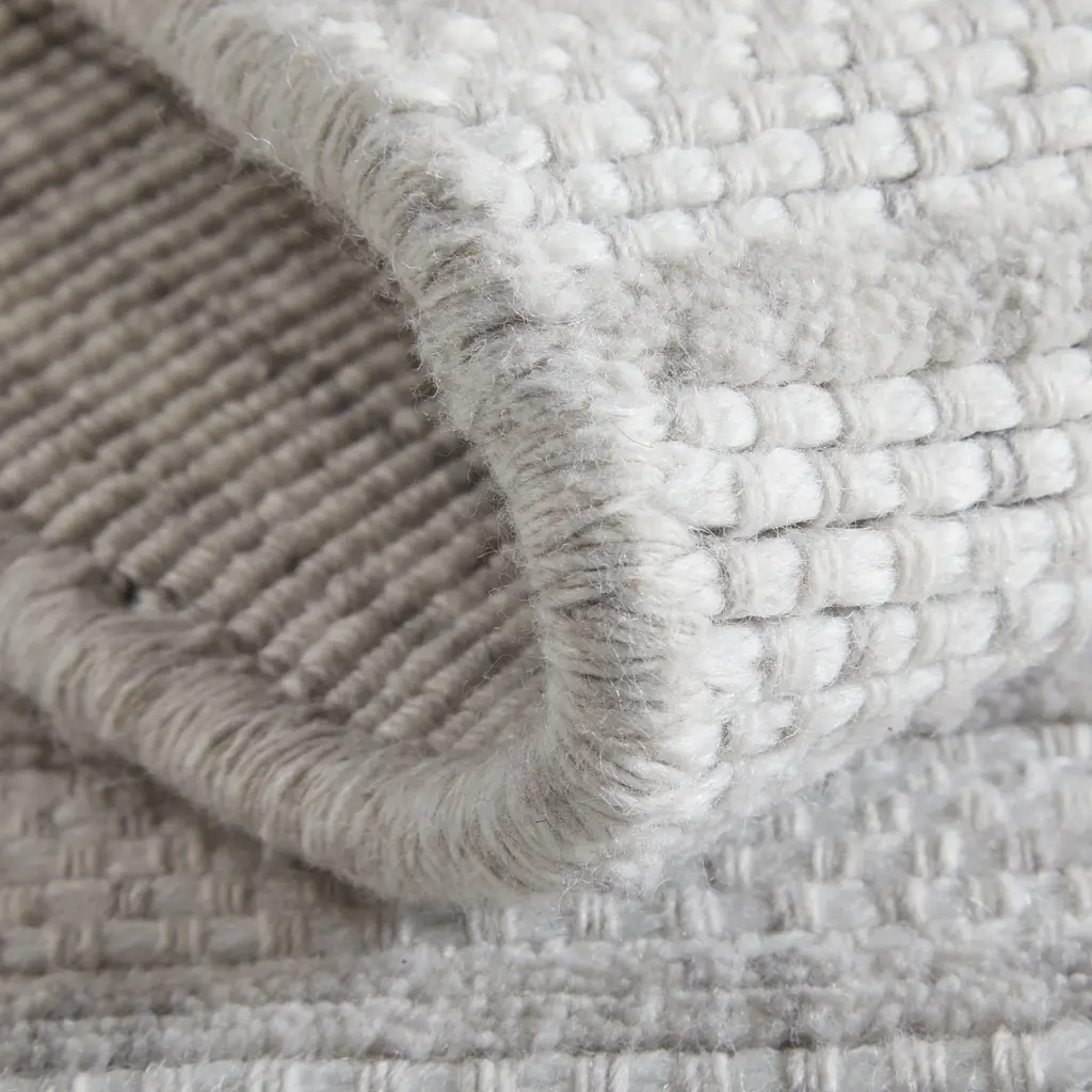 Collection: Highview Colors: Gray, Ivory Construction: Hand Woven Material: Face: 100%Polyester Pile: Low Pile Pile Height: 0.5" Styles: Contemporary,Casual Backing: N/A Made In: India Thickness: 0.5" Price Range: $$$$$ (Premium)