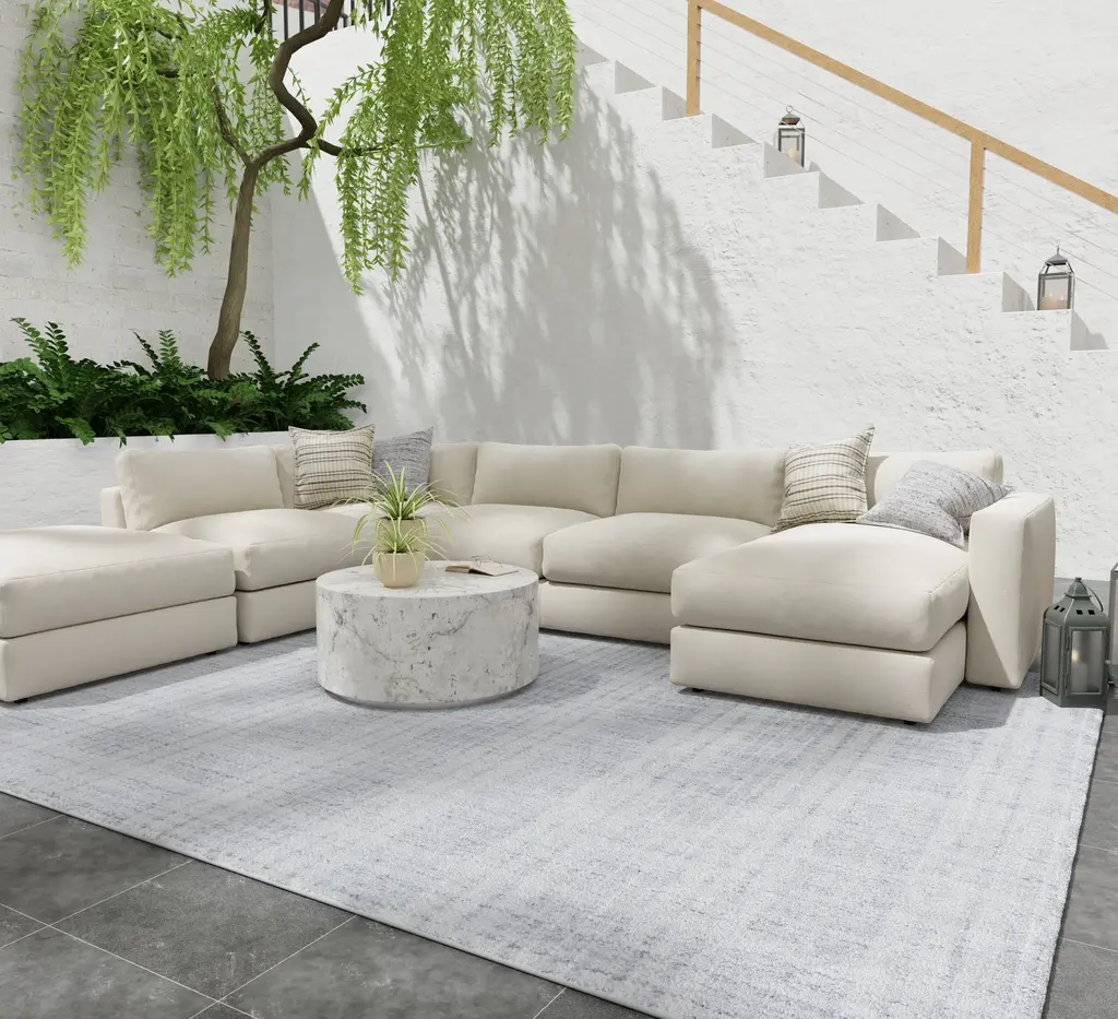 Collection: Highview Colors: Gray, Ivory Construction: Hand Woven Material: Face: 100%Polyester Pile: Low Pile Pile Height: 0.5" Styles: Contemporary,Casual Backing: N/A Made In: India Thickness: 0.5" Price Range: $$$$$ (Premium)