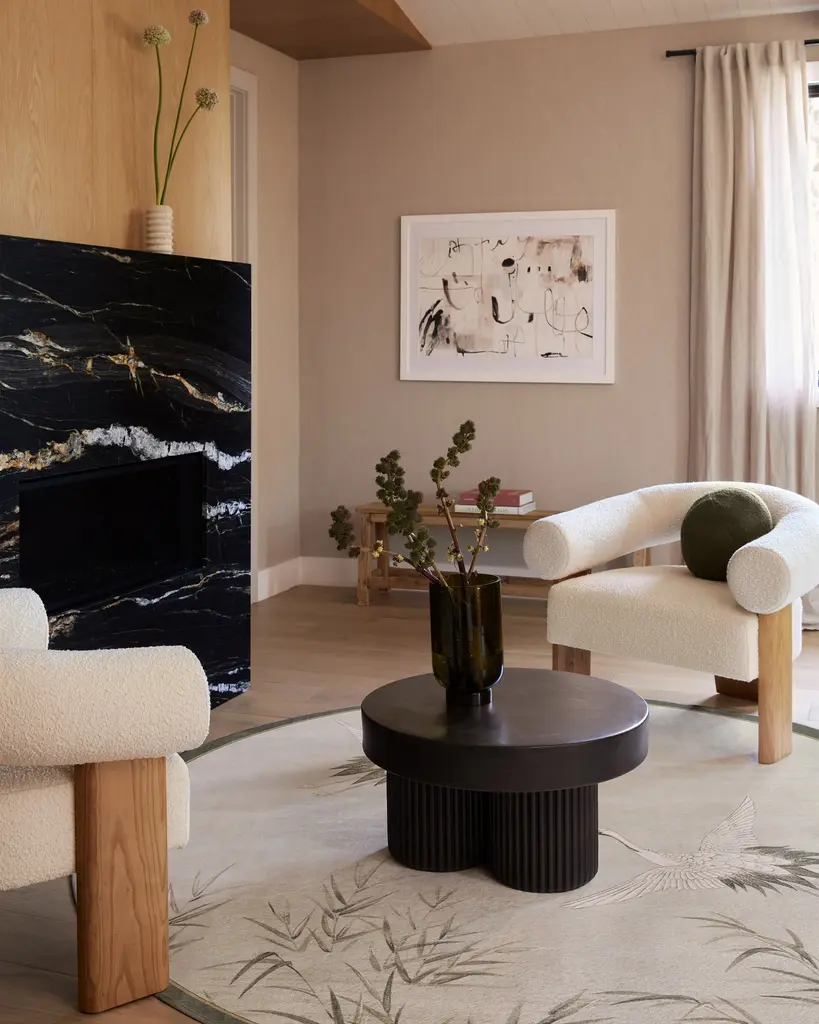 Inspired by the serene feeling of nature, our Gracie Hiko Natural Stone Rug features two gracefully soaring birds. The handpainted feel of the feather detailing, combined with textured strokes of the reeds, adds an artistic touch to the composition. Subtle organic shifts in lighter tones mimic the softness of clouds, adding movement to the design. A color palette of cream, dark warm grey, soft grey, mid-tone neutrals, and gold mixes seamlessly against a neutral grey-beige background. Water-resistant, stain-resistant, and machine-washable. Rug colors may vary slightly according to your device and the lighting in your space.