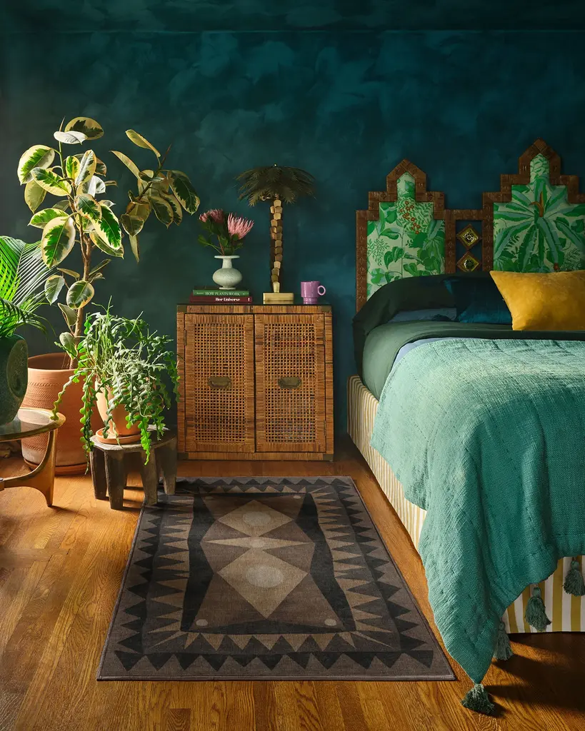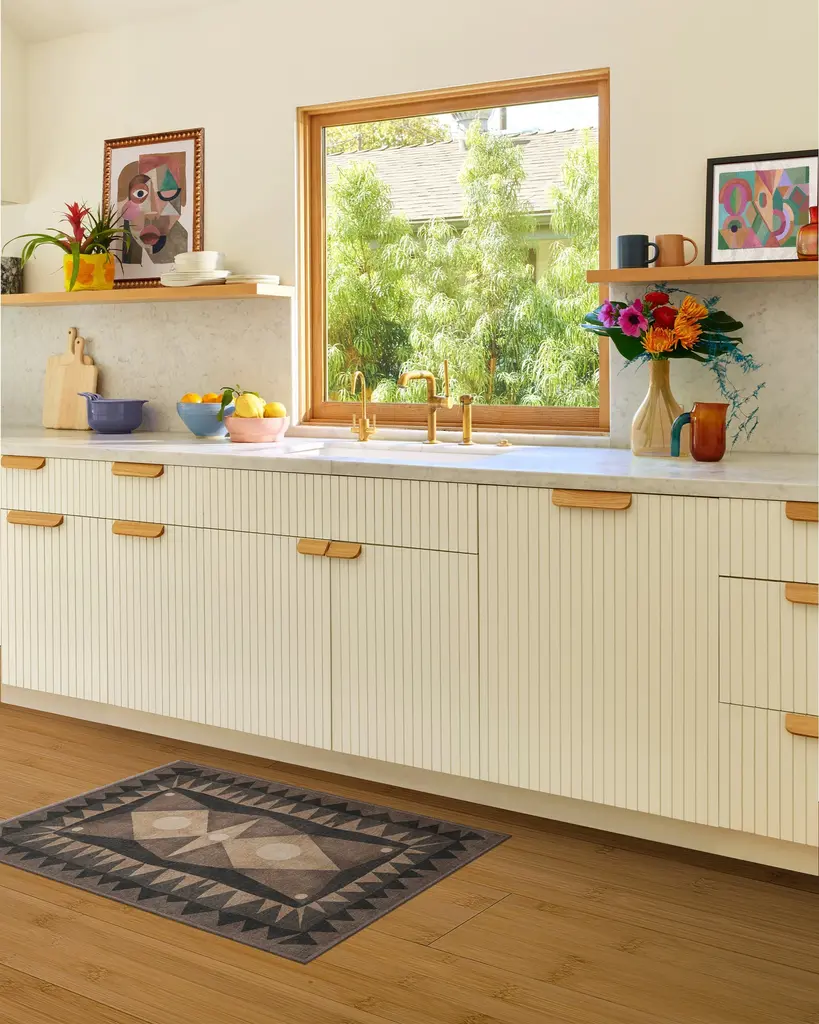 Come home to color and art reminiscent of Hilma af Klint with our Justina Blakeney Hilma Charcoal Rug. Inspired by mesmerizing geodes and the enchanting way crystals refract light, this radial triangle design features a geometric play on a sunburst surrounded by soft, luminous edges. Its neutral color palette includes shades of charcoal, taupes, natural tans, and creams. Water-resistant, stain-resistant, and machine-washable. Rug colors may vary slightly according to your device and the lighting in your space.