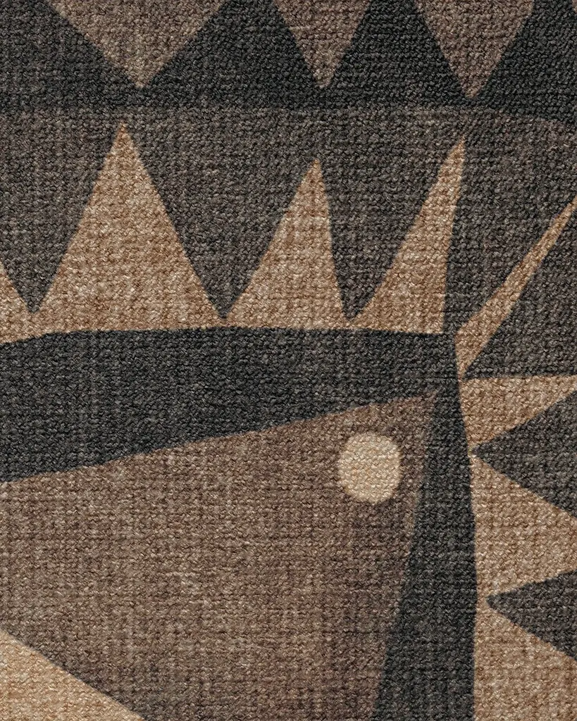 Come home to color and art reminiscent of Hilma af Klint with our Justina Blakeney Hilma Charcoal Rug. Inspired by mesmerizing geodes and the enchanting way crystals refract light, this radial triangle design features a geometric play on a sunburst surrounded by soft, luminous edges. Its neutral color palette includes shades of charcoal, taupes, natural tans, and creams. Water-resistant, stain-resistant, and machine-washable. Rug colors may vary slightly according to your device and the lighting in your space.
