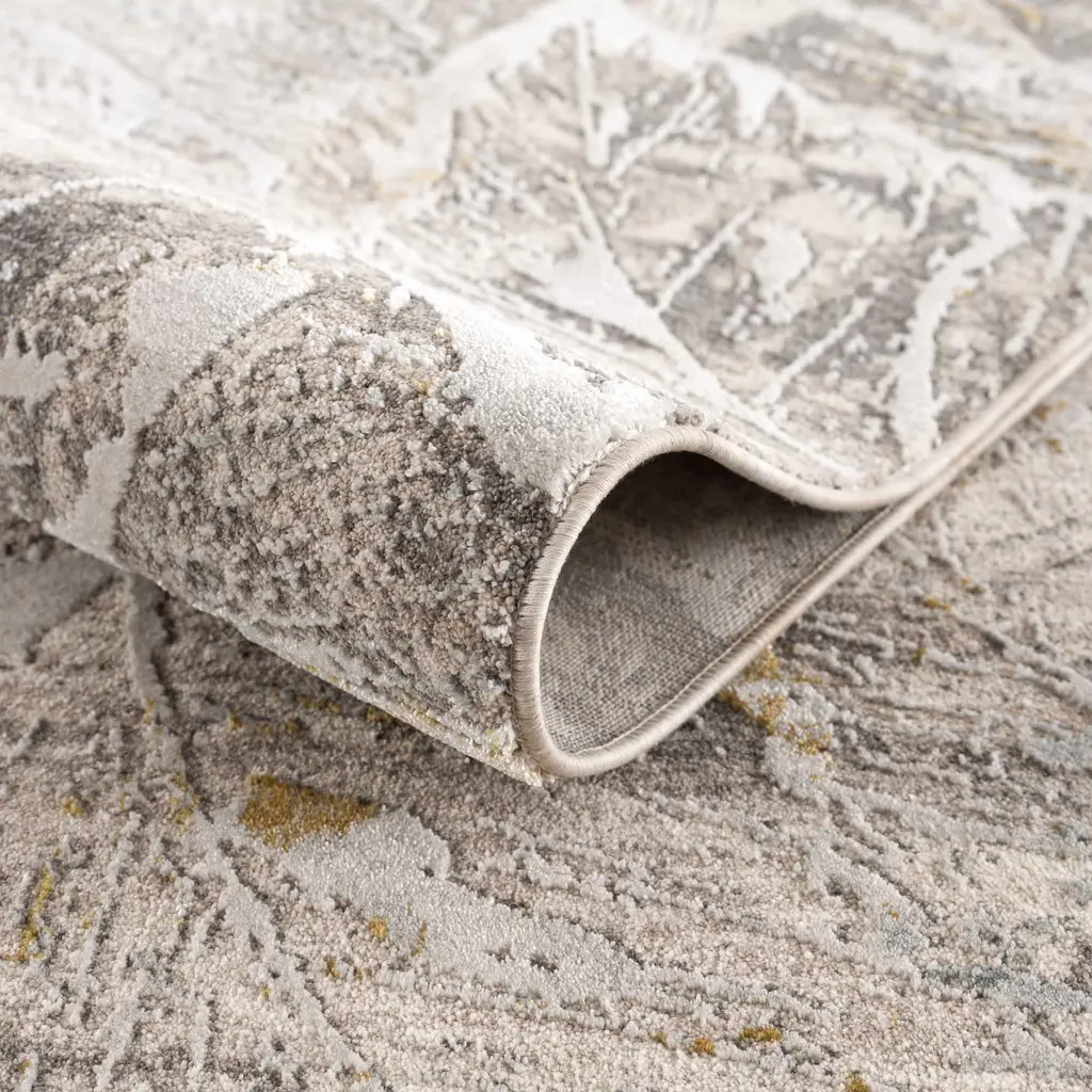 Collection: Hinda Colors: Light Gray, Dark Brown, Gray, Medium Gray Construction: Machine Woven Material: 100% Polyester Pile: Medium Pile Pile Height: 0.35" Styles: Contemporary Made In: Turkey Thickness: 0.43" Fringe Length: 0.43" Price Range: $$$$$ (Affordable)