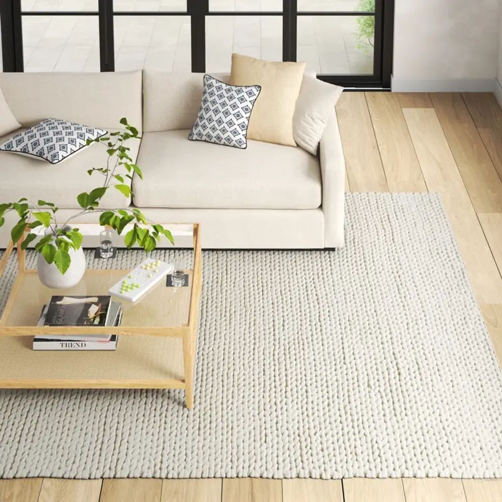 Hiram Handmade Handwoven Wool Beige Area Rug