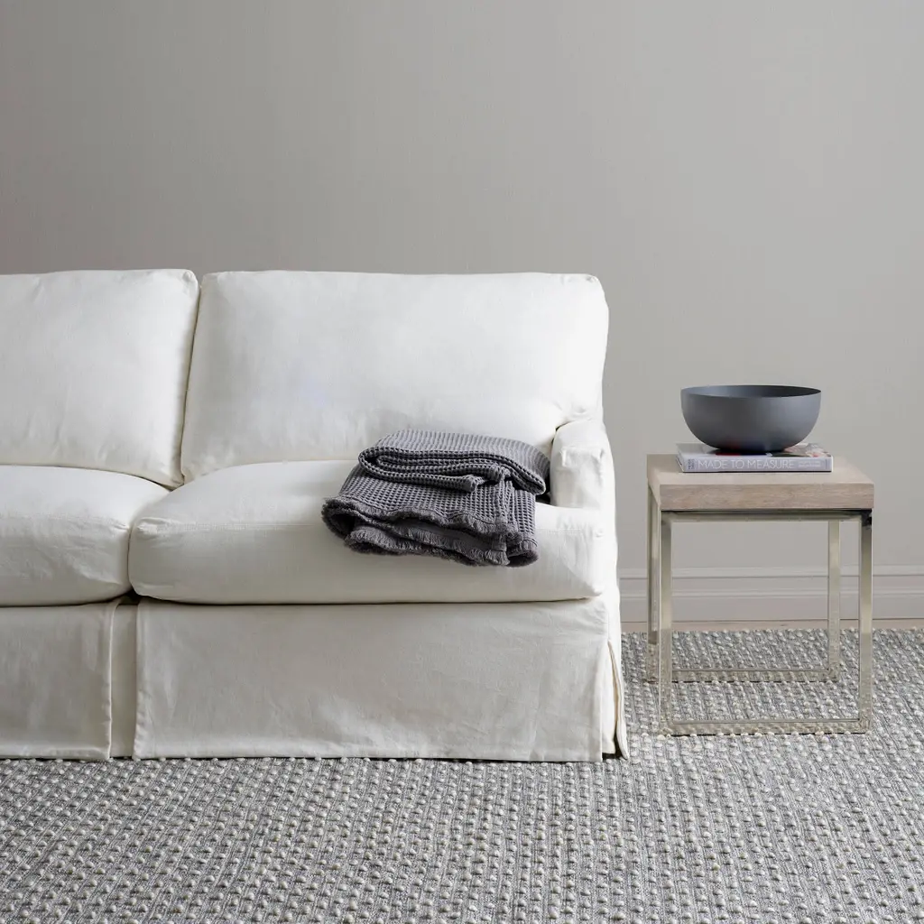 Multi marled ground of charcoal, ivory, and black resembles acid washed denim with raised hobnail neps for a pleasing underfoot texture and performance (or is it PAWformance?) par excellence. For versatility and comfort, you can't beat our innovative new rug designs in wonderful, easy to clean wool-like fibers.