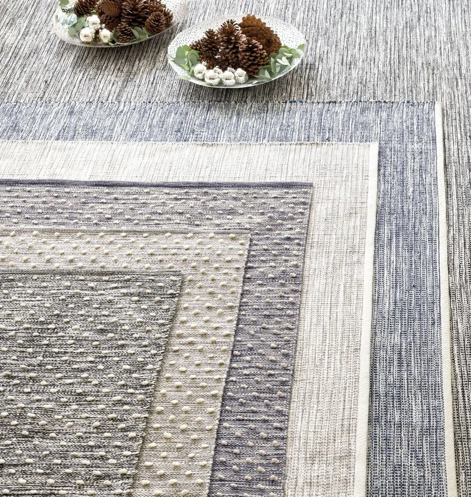 An easy addition to any indoor or outdoor space, this textural rug is handwoven from durable polyester fibers with a raised hobnail design on a marled indigo ground. We recommend a rug pad to extend the life of the rug and keep it securely in place.
