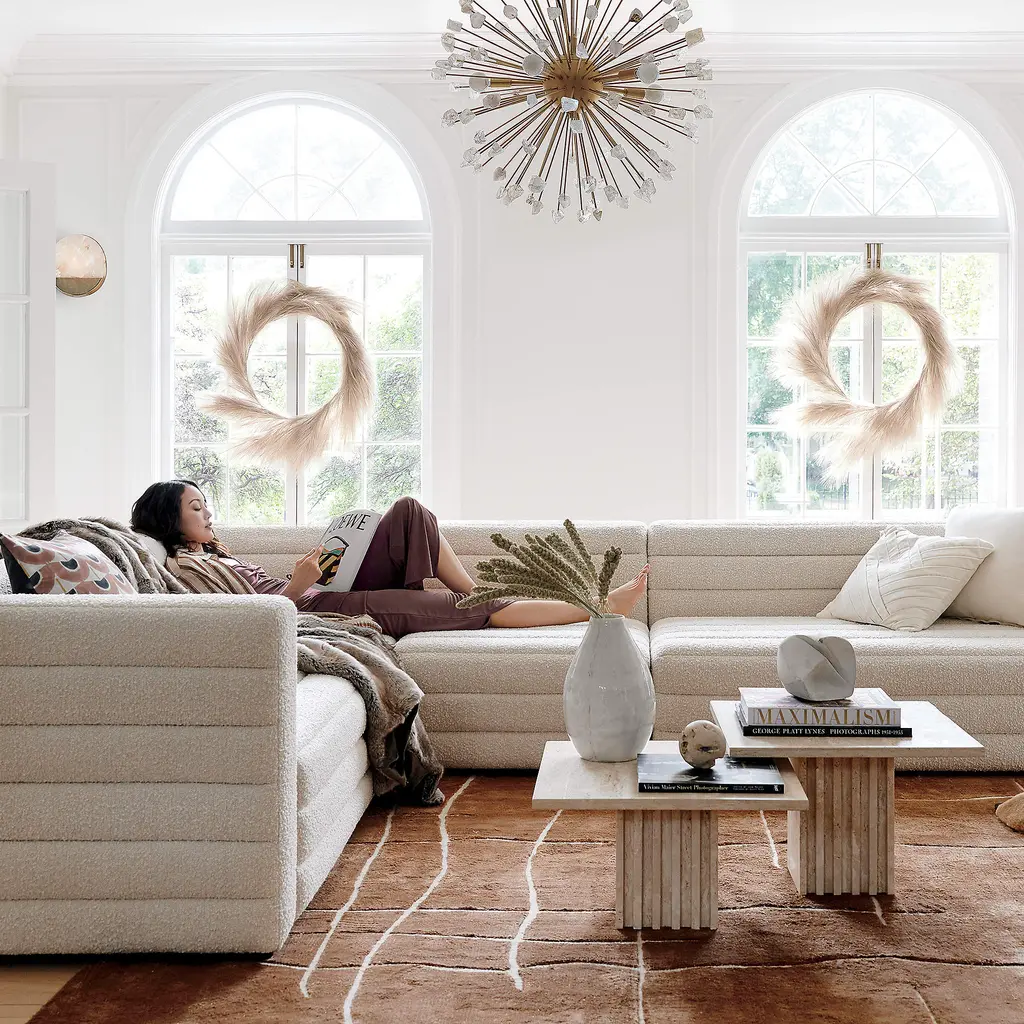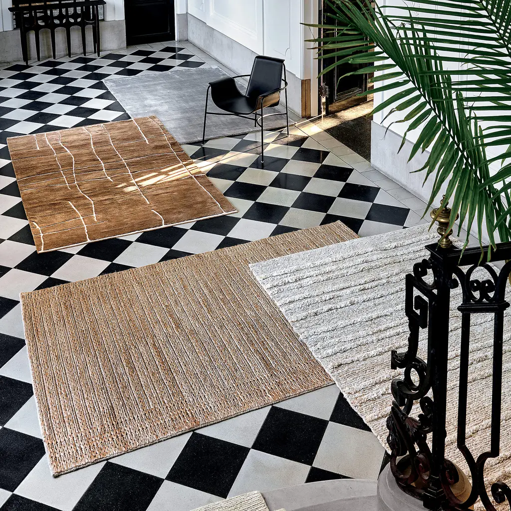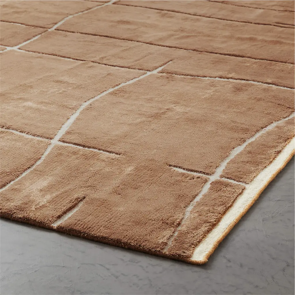 Woven from a mix of wool and silky rayon threads, this plush pile rug feels amazing underfoot. Warm mocha wool base is overlaid with soft white lines creating an abstract crocodile pattern. A sophisticated nod to the classic animal print. CB2 exclusive.How will it look in your room? 12"x12" rug samples are available in stores for a fee refundable upon return of the sample.