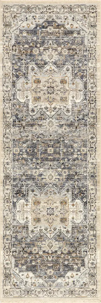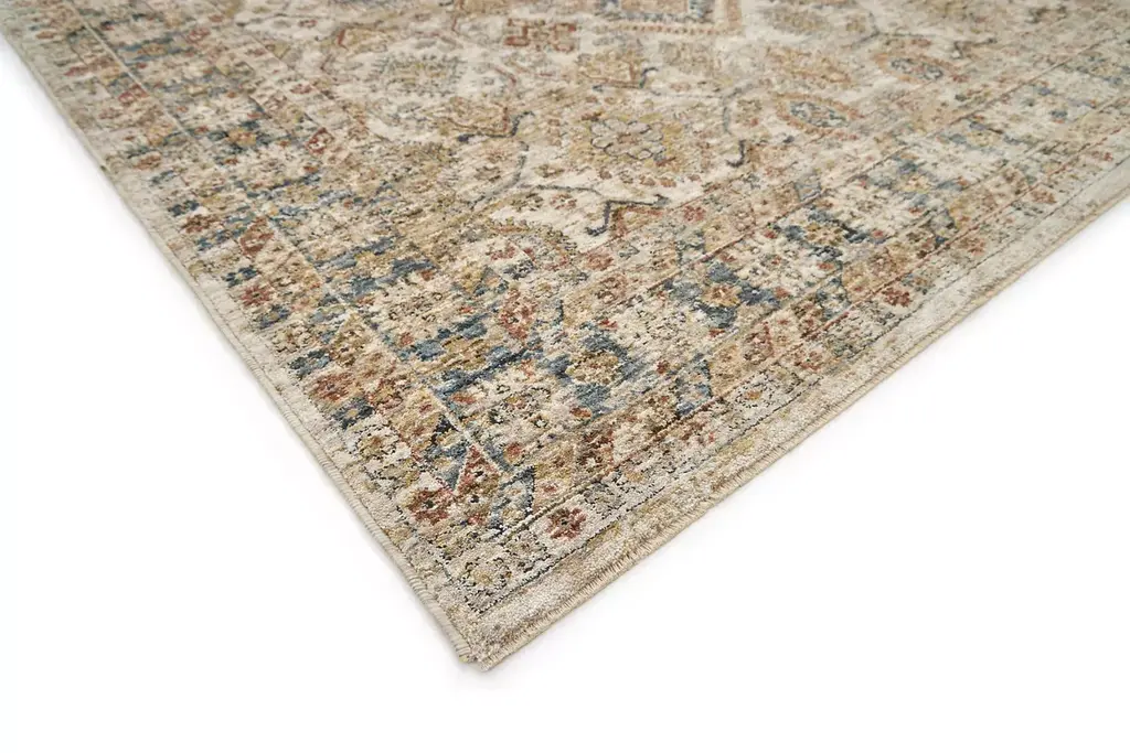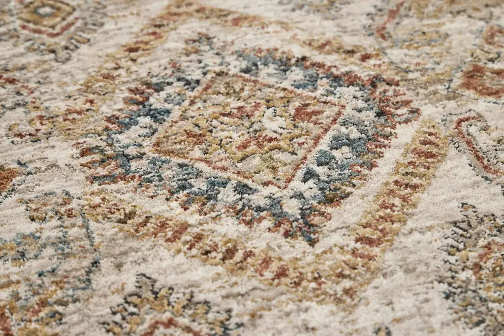 Our Holden rug adds a timeless style to any space. Featuring a classic pattern, this piece features muted earth tones of natural ivory, blues, yellows and greens for a touch of subtle sophistication. Expertly crafted using cross-woven space-dyed and shrink polyester fibers, this rug offers a unique textured effect that adds depth and dimension to any room. Please select your size before adding to cart.