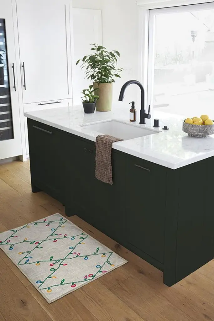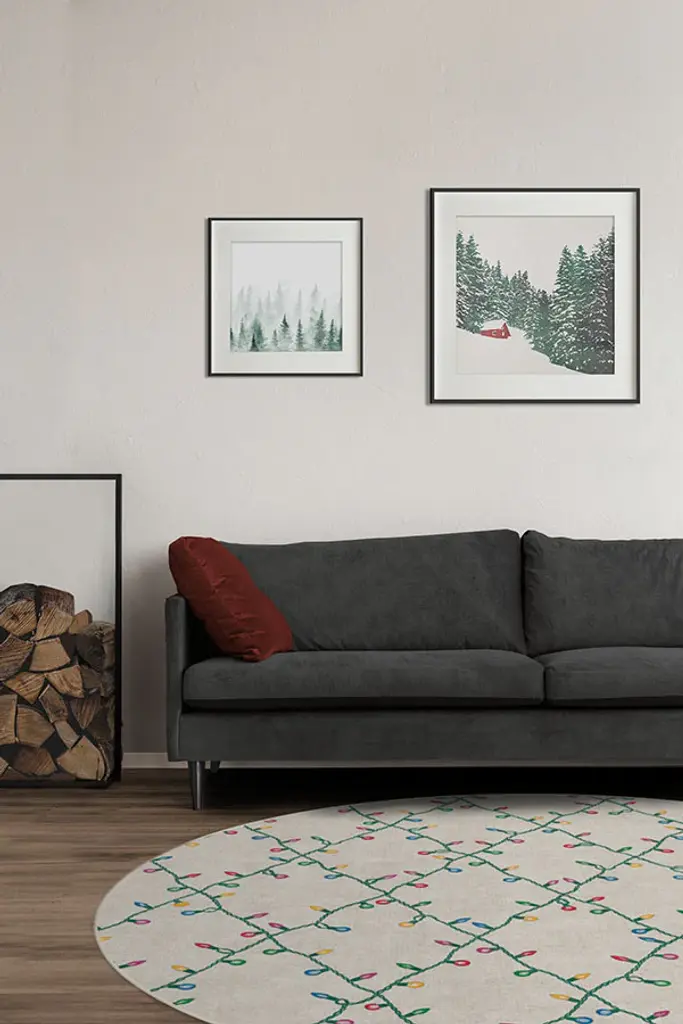 Festive and fun. Our Holiday Lights Creme Rug features a diamond pattern of vintage-style string lights in hues of tomato red and evergreen on a creamy background to brighten any room, year after year. Water-resistant, stain-resistant, and machine-washable.