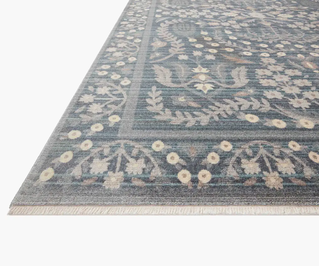 Trailing vines of delicate leaves create a detailed, botanical pattern on our Anika rug. Powerloomed in Turkey, it has a soft, shed-resistant file that is both fade and stain resistant. Part of our Rifle Paper Co. × Loloi collection. The layout and scale of our rugs is adjusted to accommodate each available size, and may be different than what is pictured here. Images of each size are available by hovering over the desired size on our desktop site.