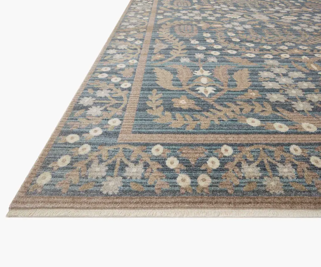 Trailing vines of delicate leaves create a detailed, botanical pattern on our Anika rug. Powerloomed in Turkey, it has a soft, shed-resistant file that is both fade and stain resistant. Part of our Rifle Paper Co. × Loloi collection. The layout and scale of our rugs is adjusted to accommodate each available size, and may be different than what is pictured here. Images of each size are available by hovering over the desired size on our desktop site.