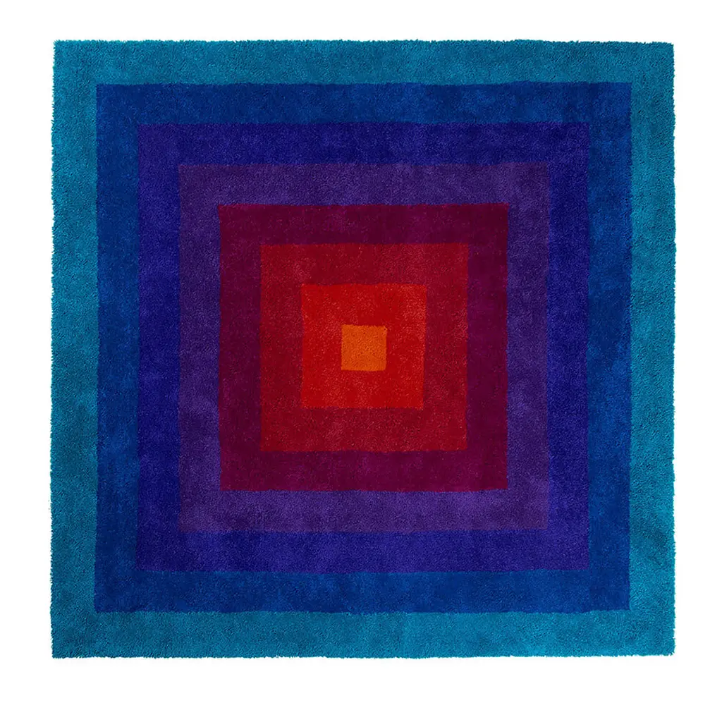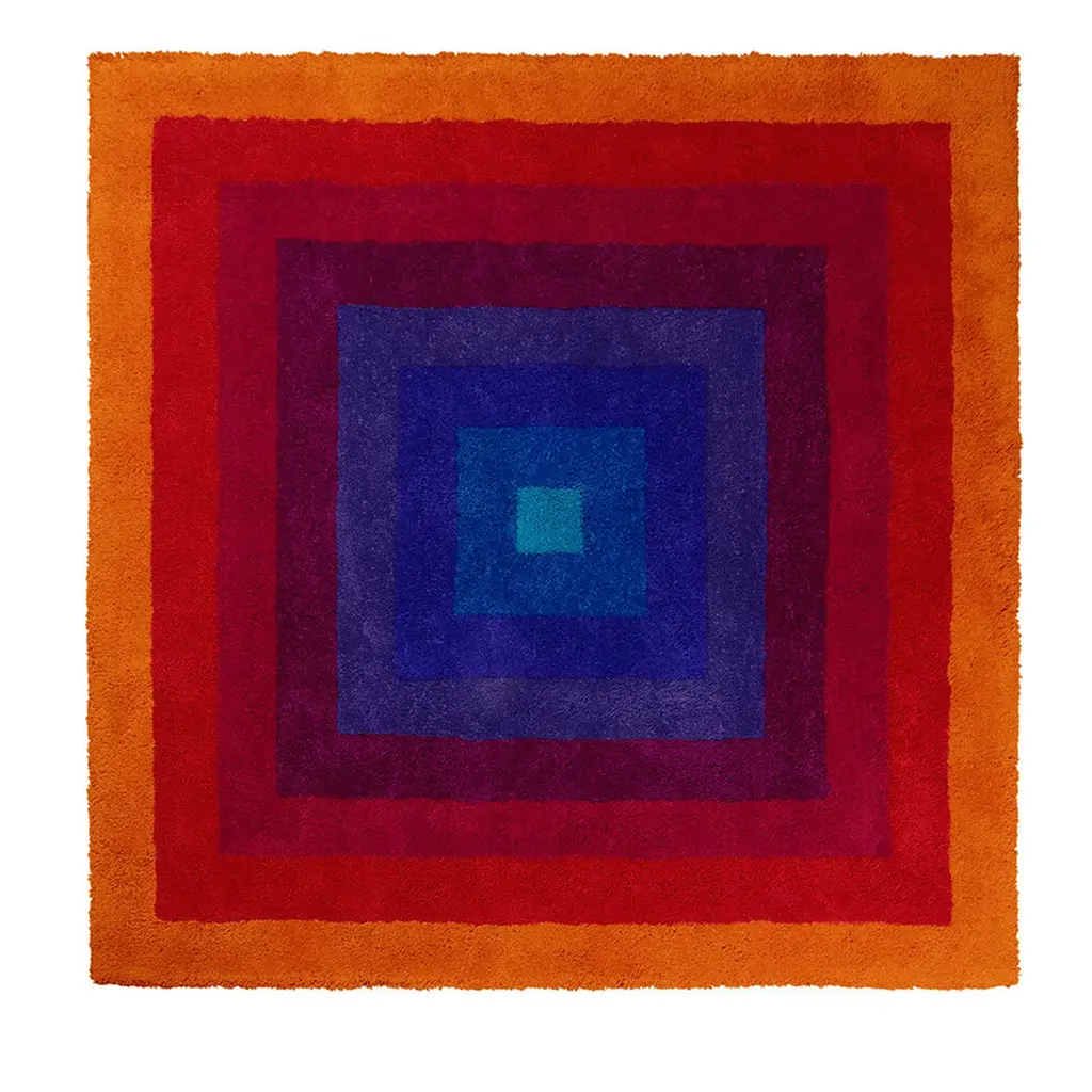 This beautiful, hand-tufted, 100% wool rug is adapted from the 1951 oil on masonite painting by Josef Albers. The rug is available in a limited edition of 150 and produced in association with the Josef and Anni Albers foundation.Josef AlbersHomage to the Square100% hand-tufted woolDimensions: 5'9" x 5'9" (1.75 meters x 1.75 meters).Edition of 150.