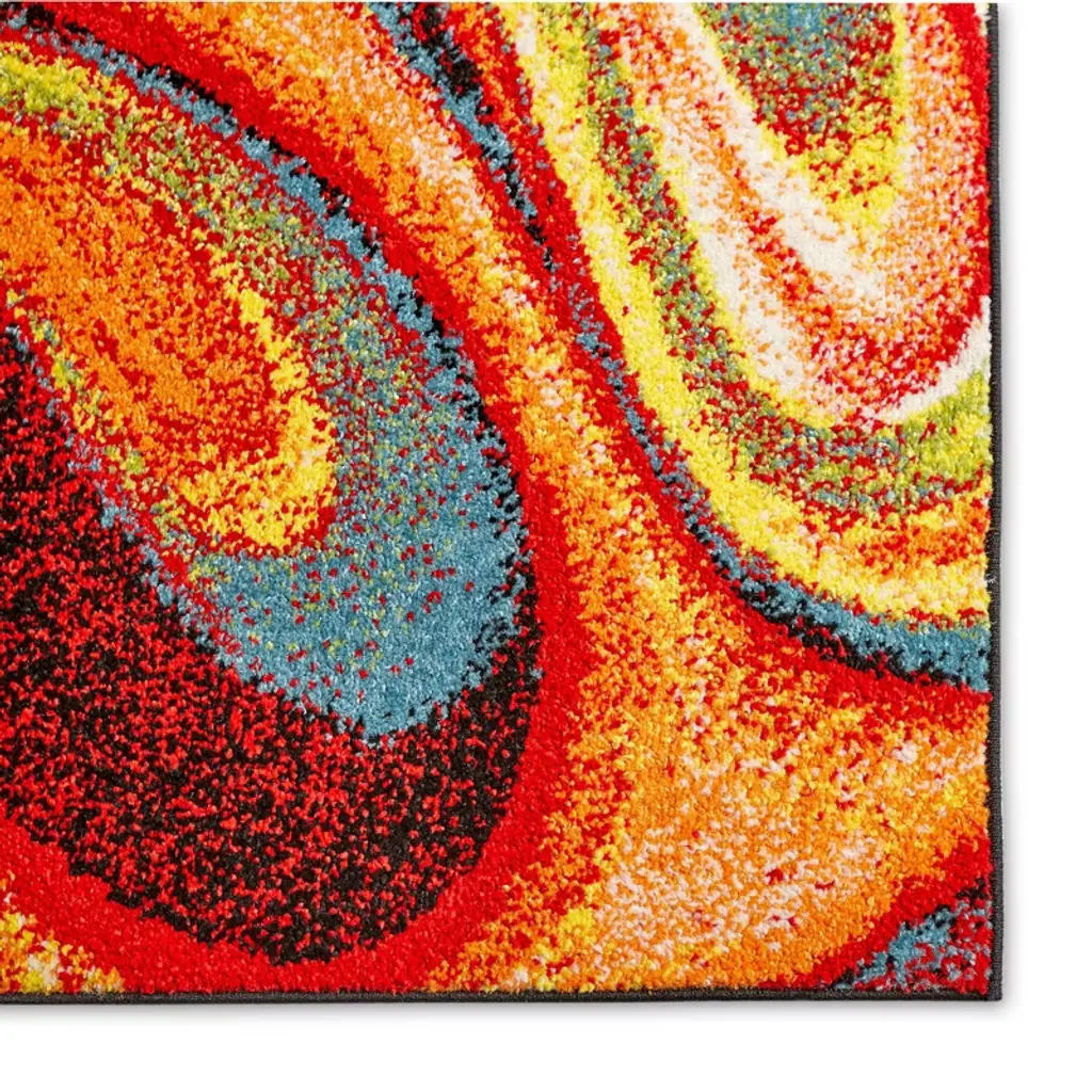 Liven up your home dÂcor with the Splash Adja rug collection by Home Dynamix. The abstract swirl design of the Splash Adja collection will make a statement in your decor. With a striking colorful palette, this area rug will bring a warm welcoming atmosphere into any room. Crafted with 100% polypropylene, this durable rug is ideal for high traffic areas. The loop pile construction of the polypropylene yarns provides soft texture that feels cozy underfoot. Stain and fade resistant, this area rug will continue to protect your hardwood floors. Made in Turkey.