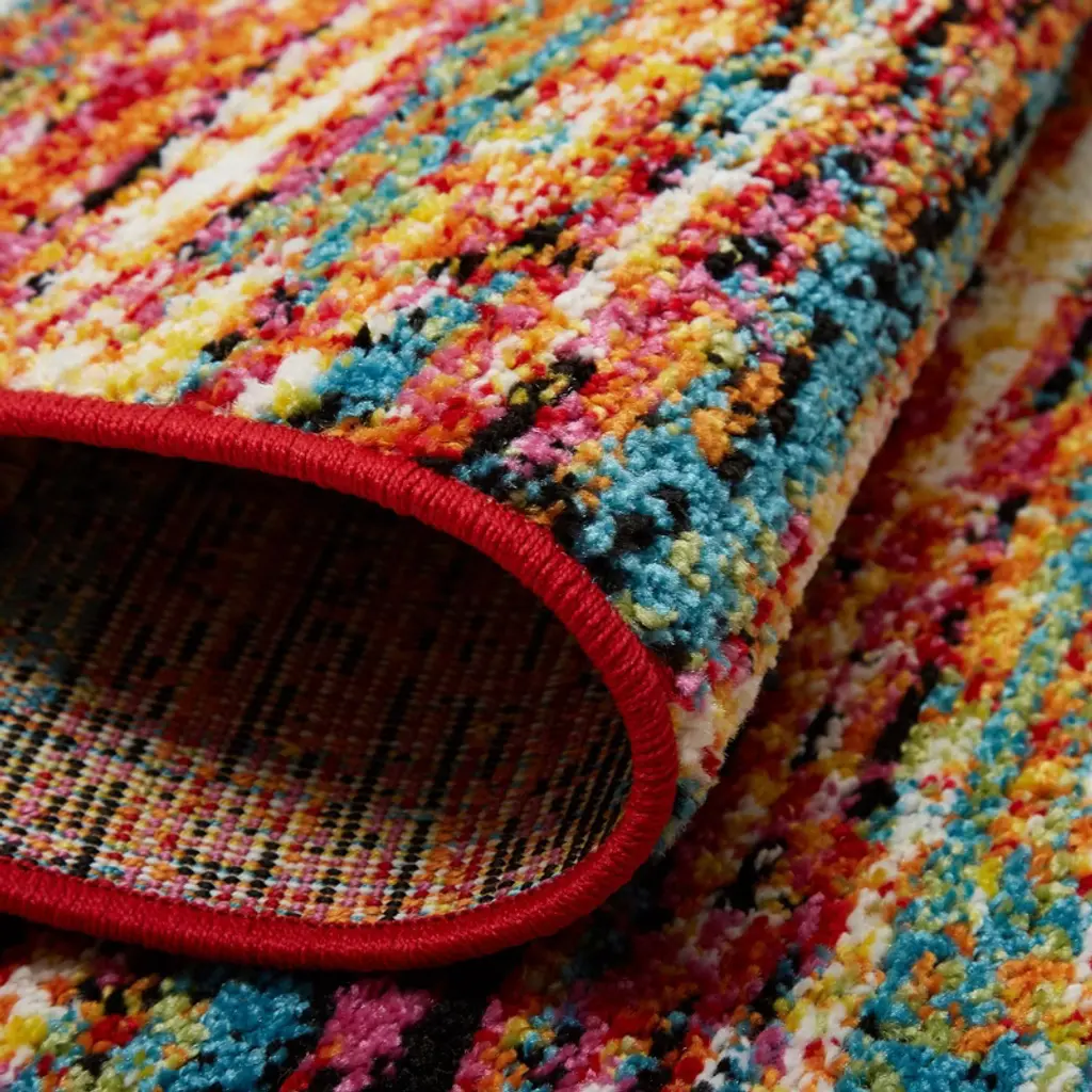 Adorn your floors with the colorful, abstract design of the Splash Cellis area rug collection by Home Dynamix. Featuring a vibrant stripe pattern in orange, cream and black, this rug adds a welcoming feel to any space. Crafted with 100% polypropylene yarns, this durable rug is stain and fade resistant. It will protect your hardwood floors and its durability makes it ideal for high traffic areas. The loop pile construction and soft yarns provide a cozy texture underfoot. Made in Turkey.