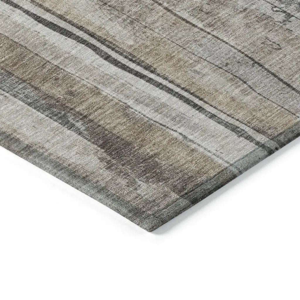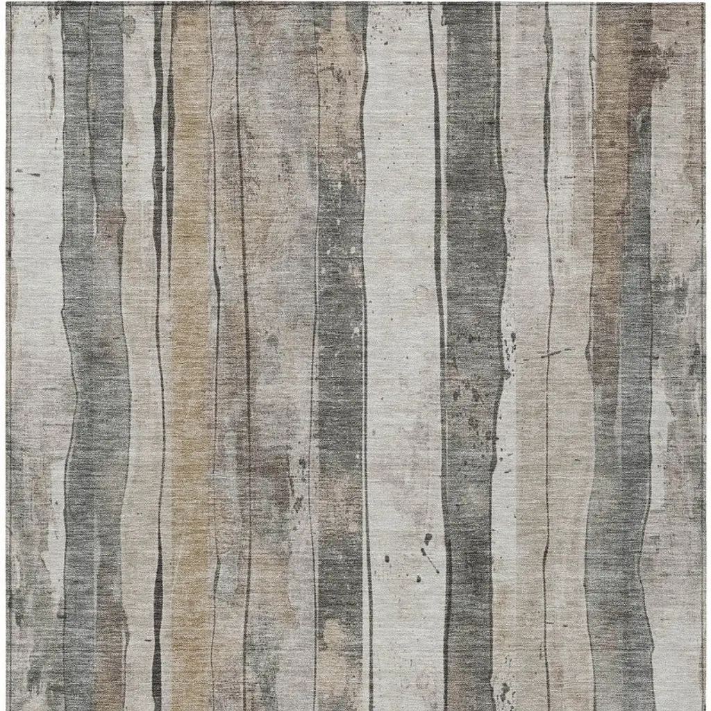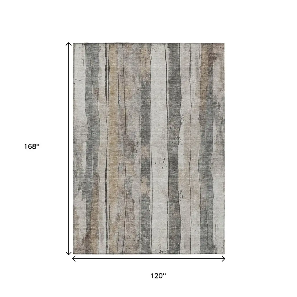 Homeroots 10' X 14' Beige And Gray Striped Washable Indoor Outdoor Area Rug