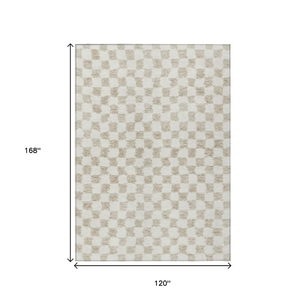 Homeroots 10' X 14' Beige And Ivory Geometric Washable Indoor Outdoor Area Rug