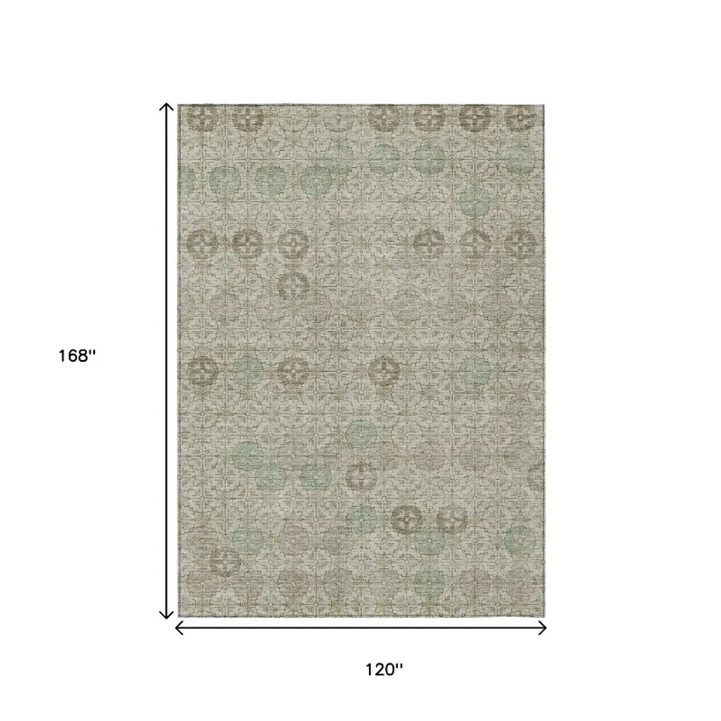 Homeroots 10' X 14' Beige And Pale Aqua Geometric Washable Indoor Outdoor Area Rug