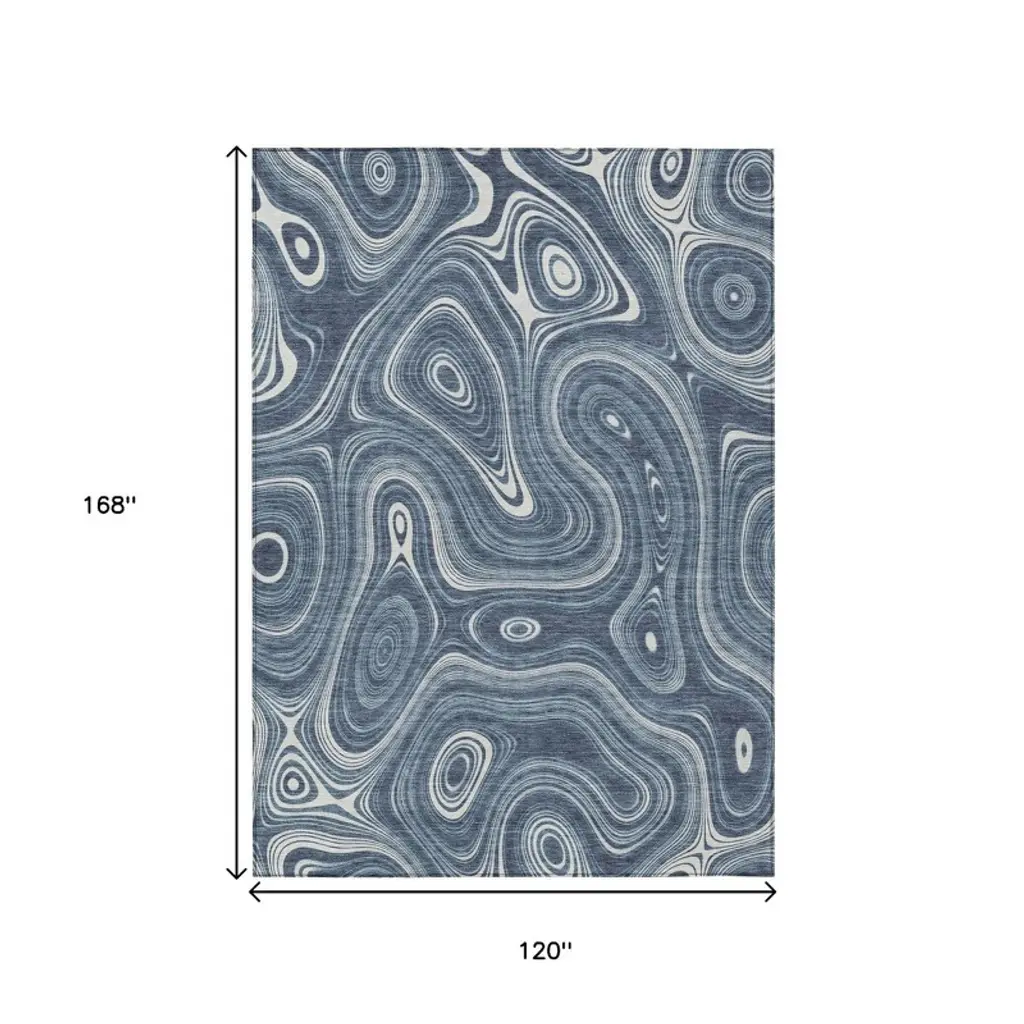 This 10-foot x 14-foot blue and ivory geometric washable indoor outdoor area rug, is a great way to add warmth to a room. This rectangle shaped rug features a geometric design that will work well both indoors or out. A classic shape marries with good looking design for your living room, hall, bedroom, porch, patio, or poolside. Ideal for outdoor spaces or high traffic areas with kids and pets, this rug is made from heavy duty polyester that is stain resistant to help repel water, dirt, and stains. Versatile in use, durable, and easy to maintain, this rug is an ideal solution to add a decorative and inviting touch to your indoor or outdoor space. 120-inch h x 168-inch w x 0.19-inch d.