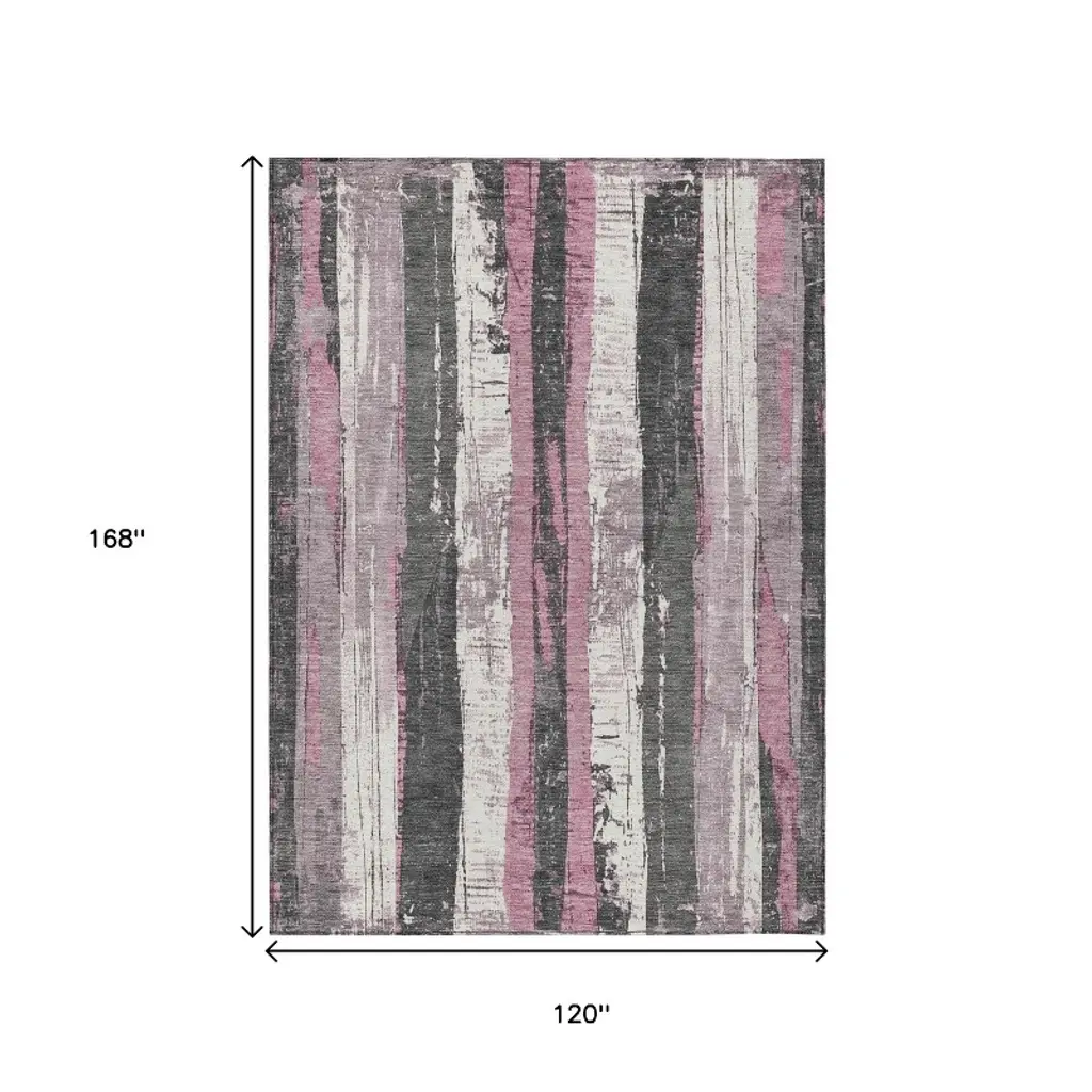 Homeroots 10' X 14' Blush And Gray Striped Washable Indoor Outdoor Area Rug