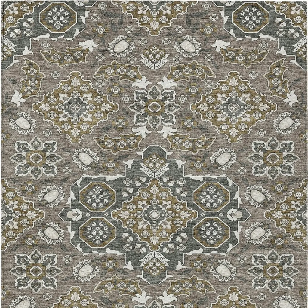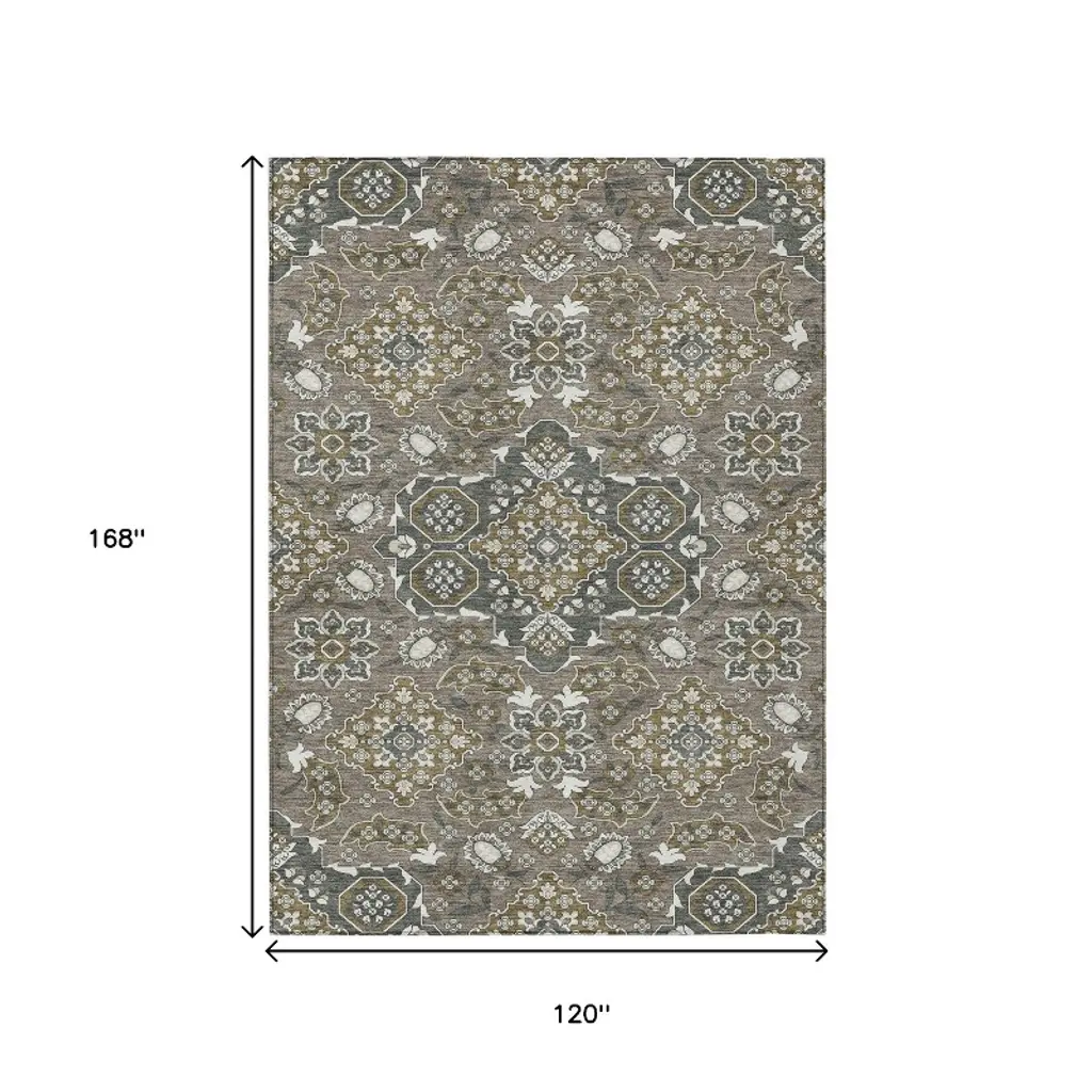 Homeroots 10' X 14' Brown Gray And Ivory Medallion Washable Indoor Outdoor Area Rug