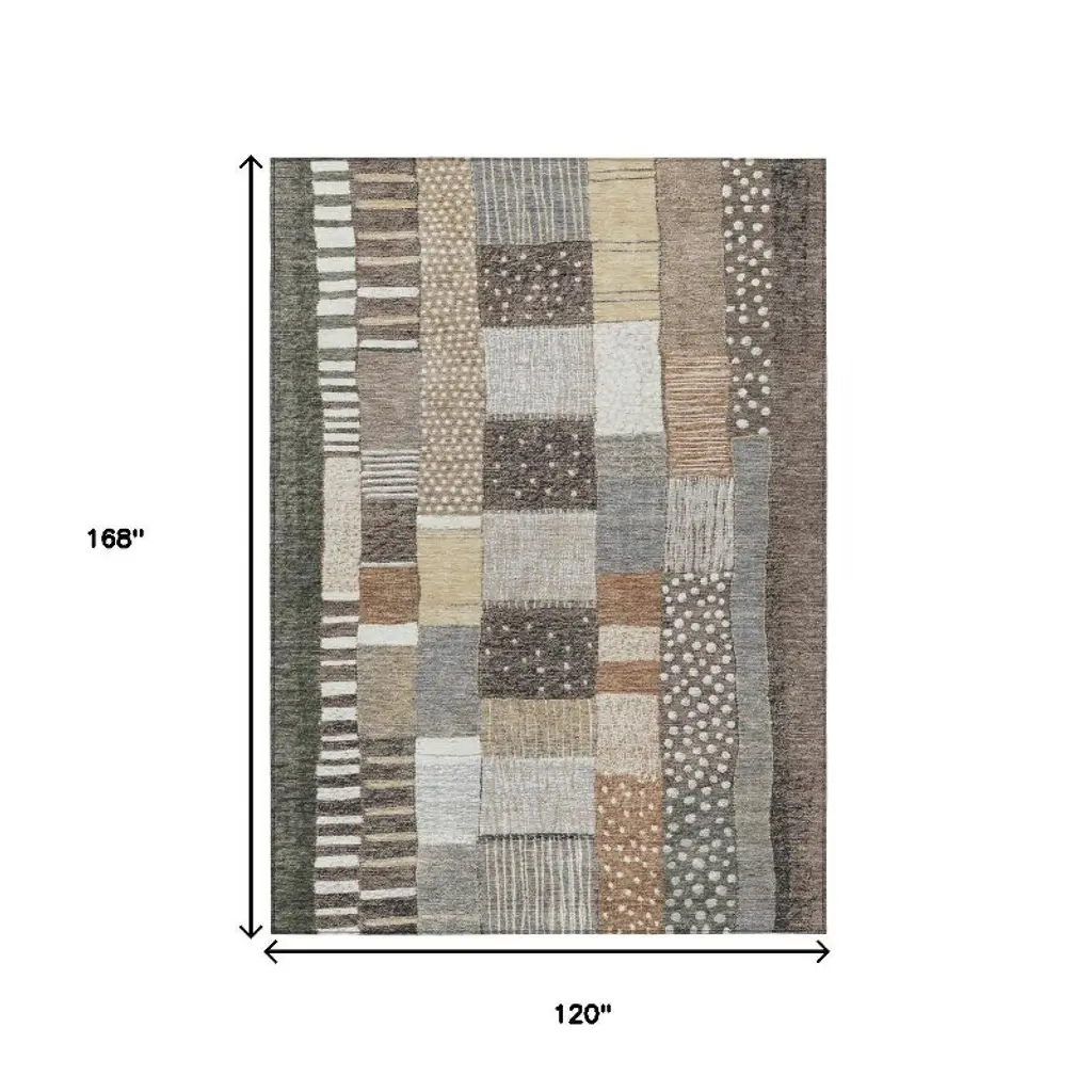 Homeroots 10' X 14' Brown Ivory And Gray Geometric Washable Indoor Outdoor Area Rug
