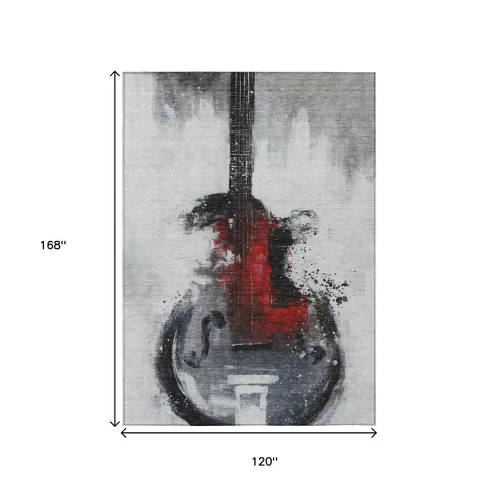 Homeroots 10' X 14' Gray Charcoal And Red Abstract Washable Indoor Outdoor Area Rug
