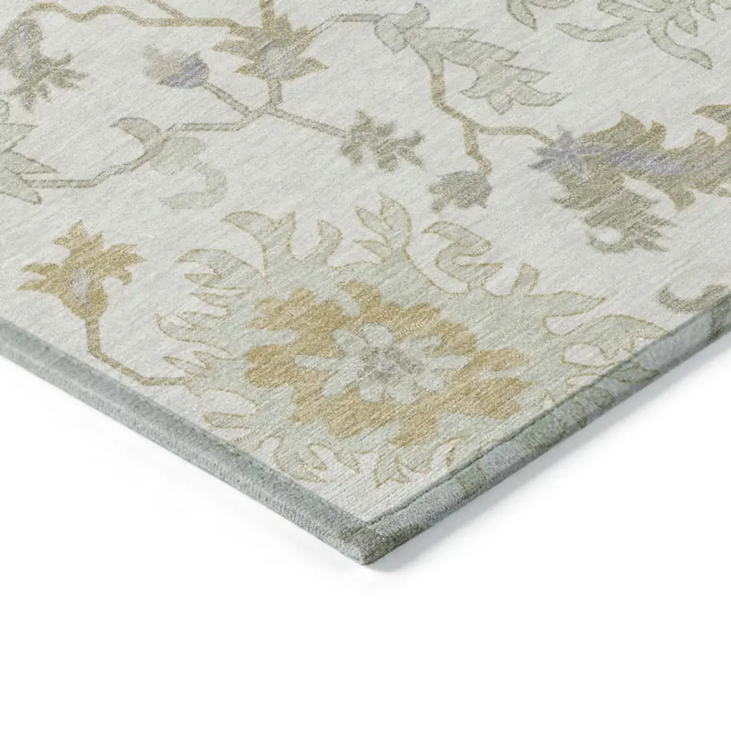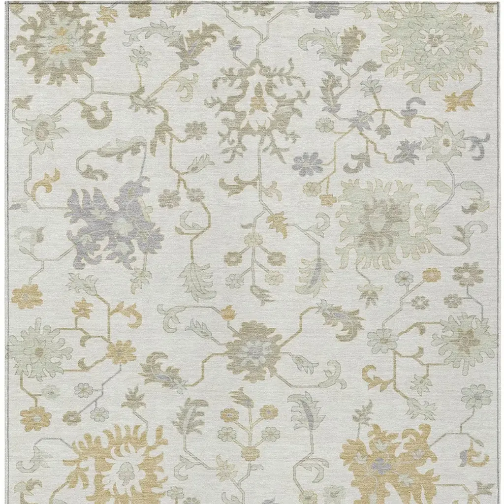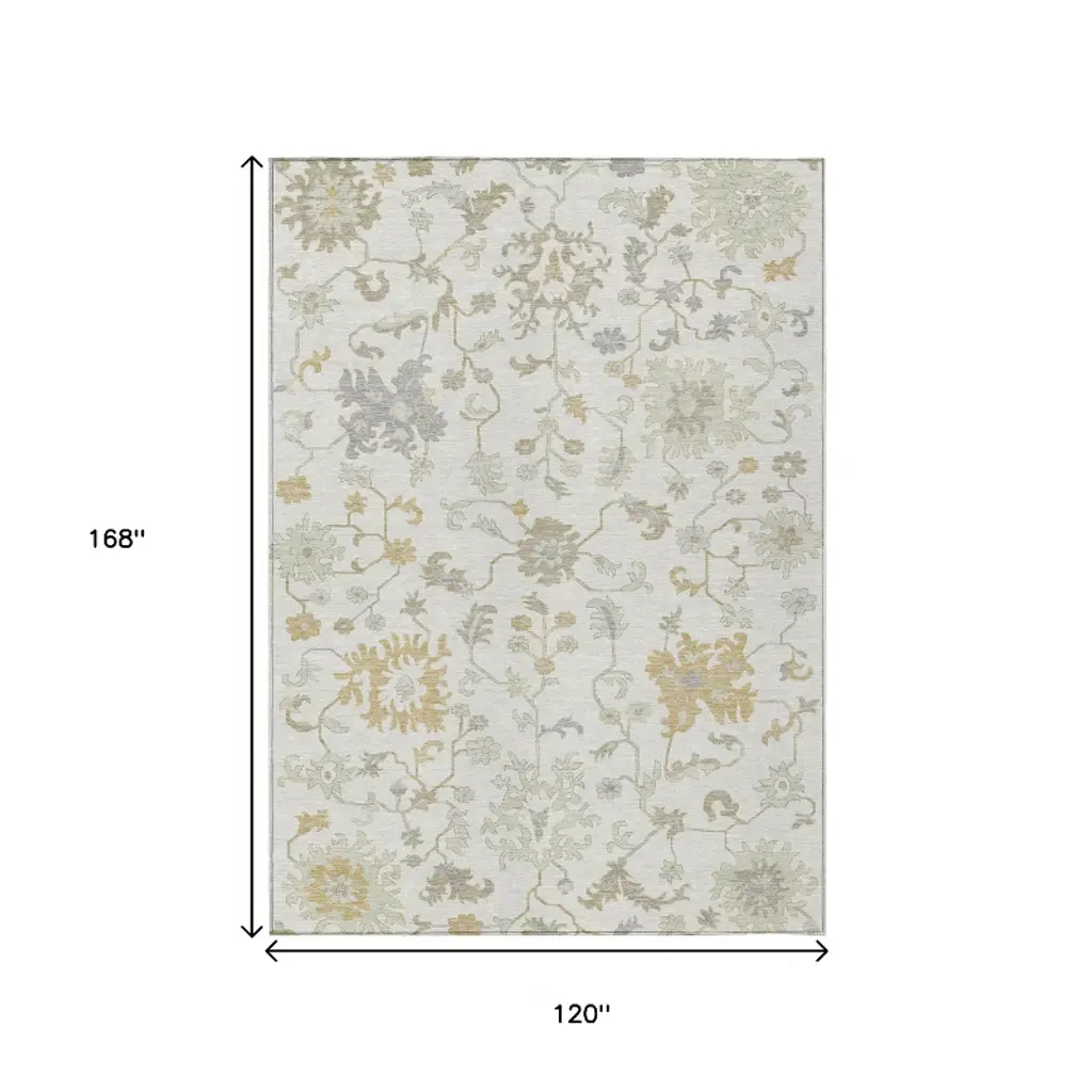 Homeroots 10' X 14' Ivory Gray And Taupe Floral Washable Indoor Outdoor Area Rug