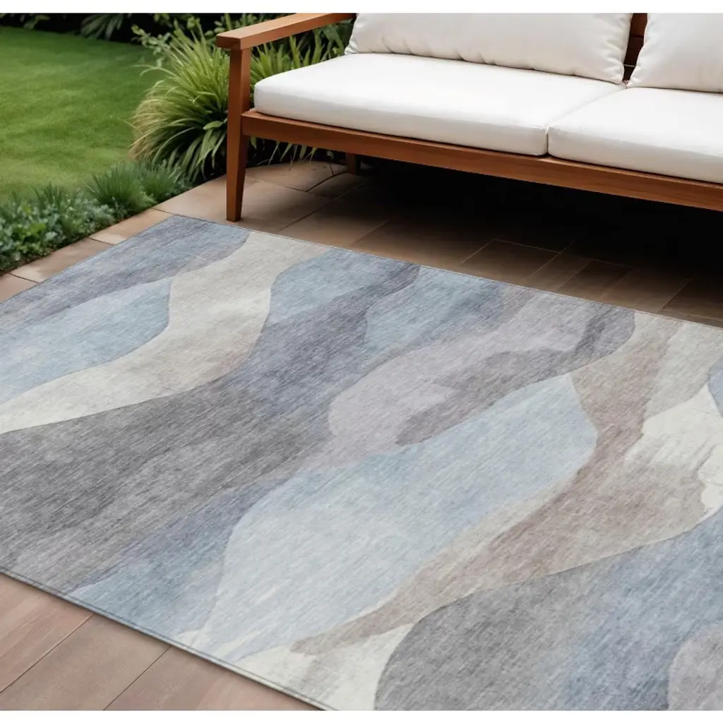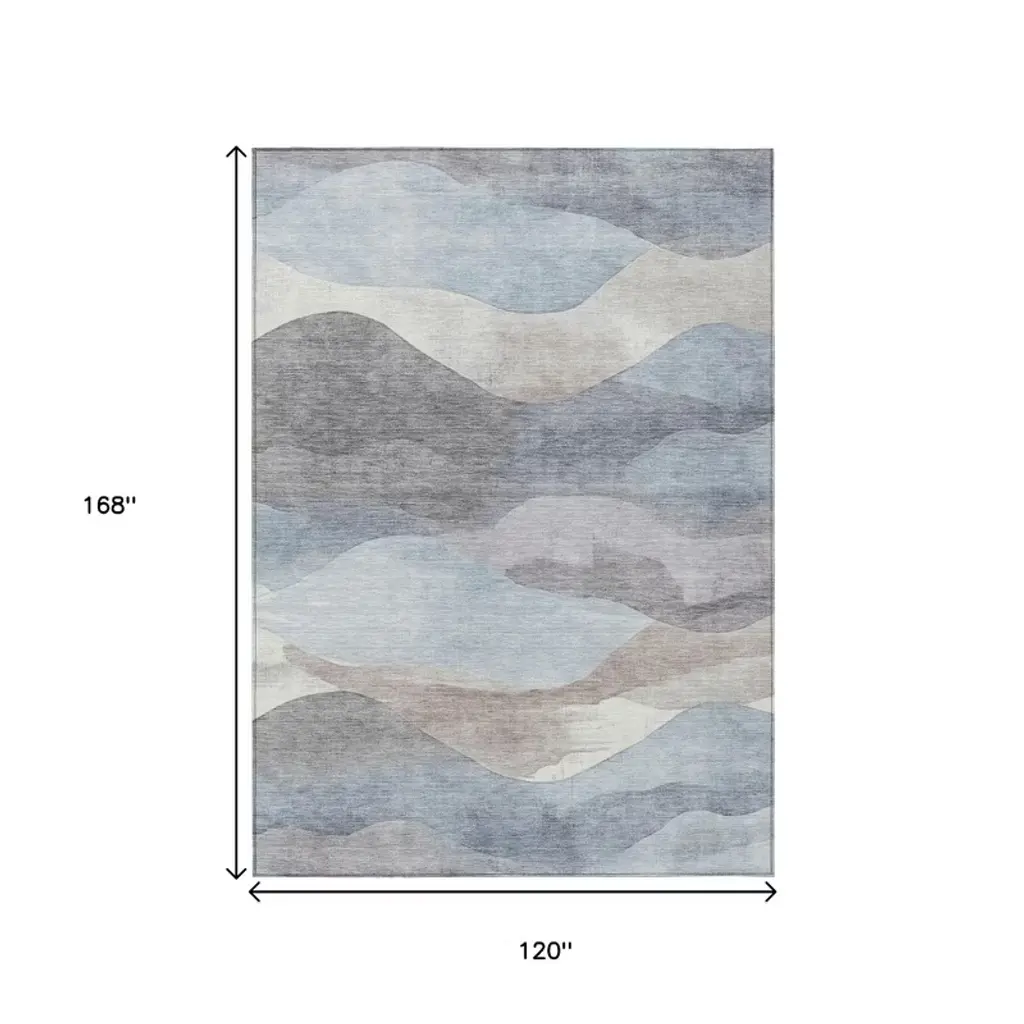 Homeroots 10' X 14' Sky Blue And Beige Abstract Washable Indoor Outdoor Area Rug