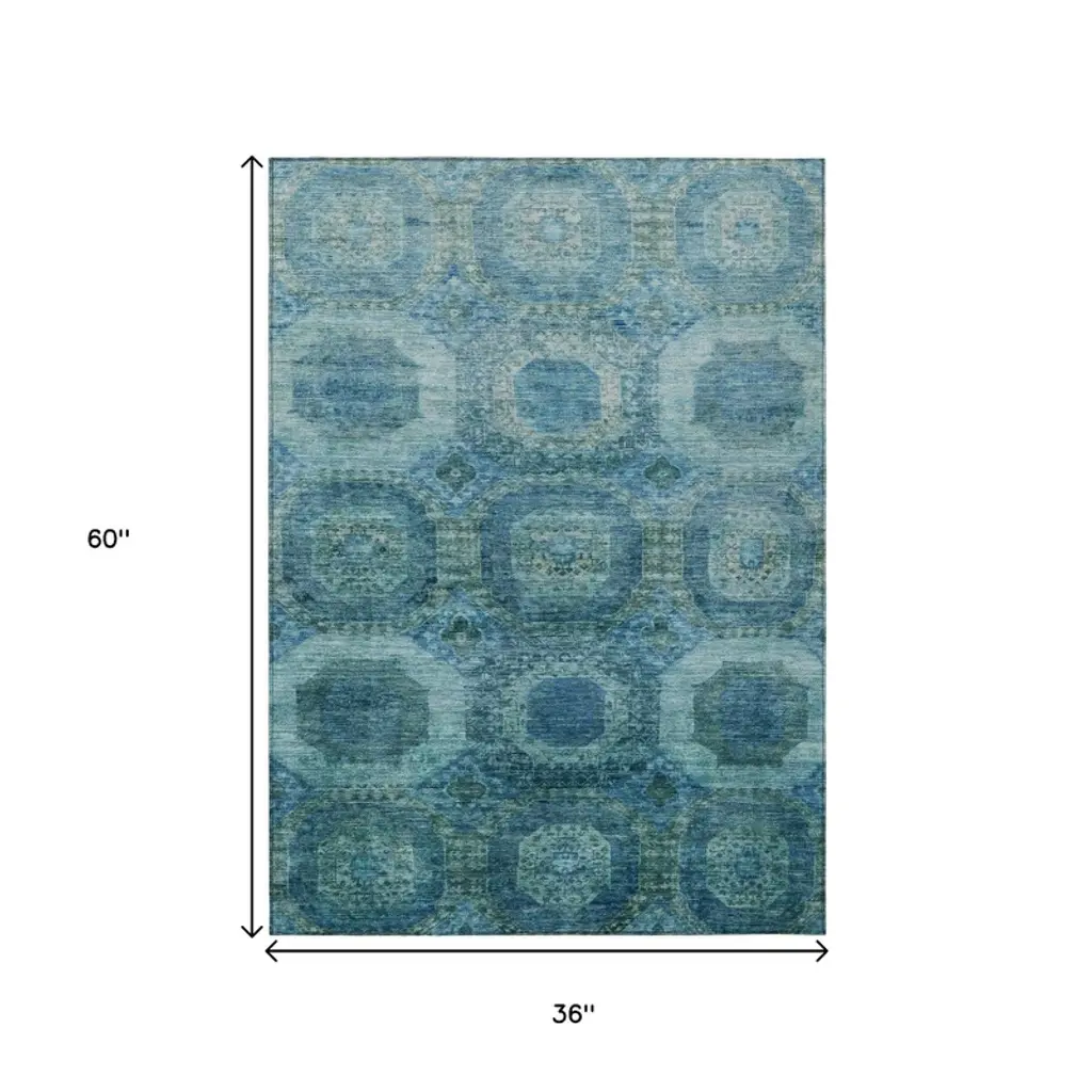 Homeroots 3' X 5' Blue And Ivory Medallion Washable Indoor Outdoor Area Rug
