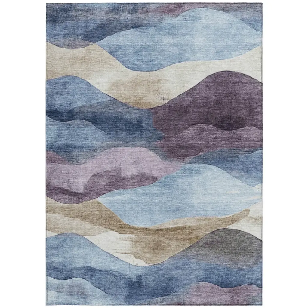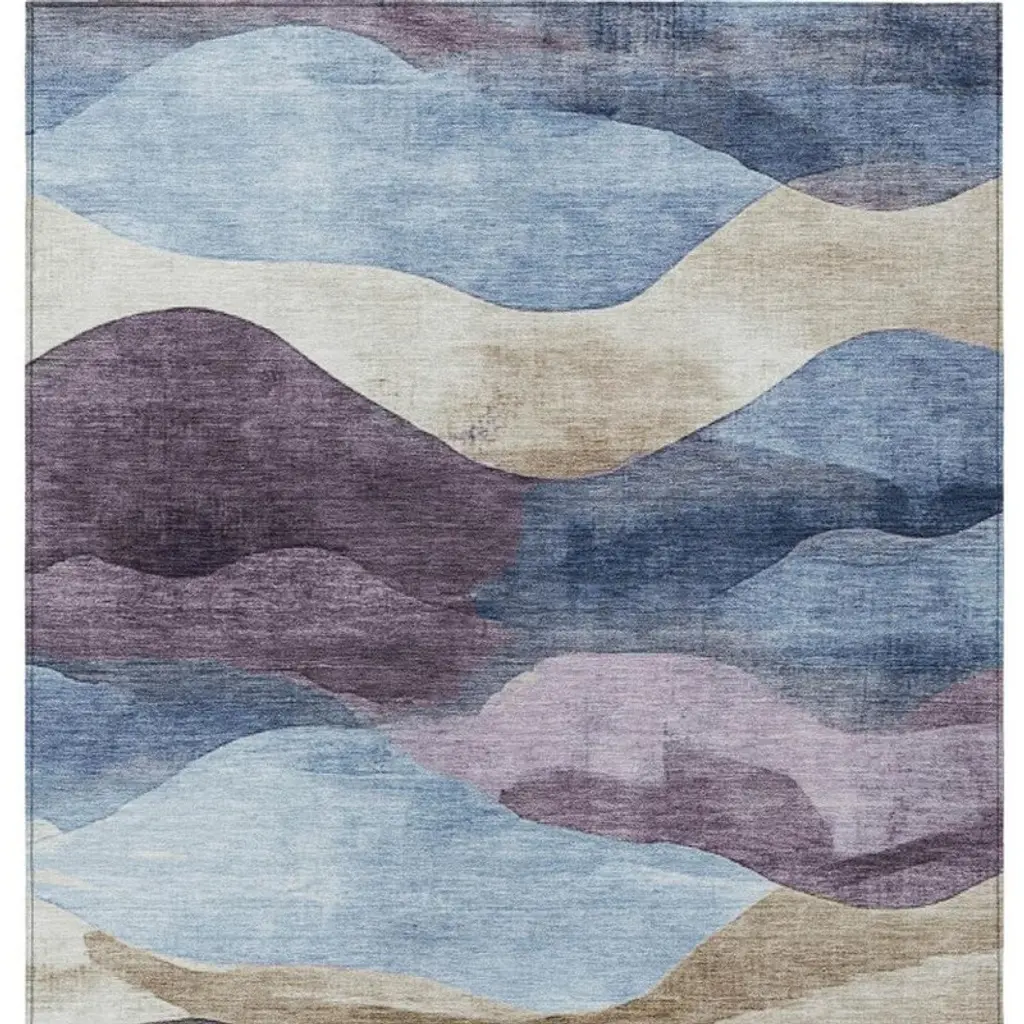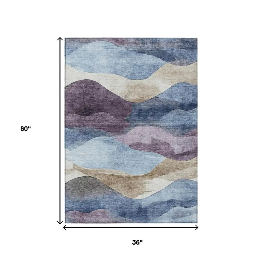 Homeroots 3' X 5' Denim Blue And Eggplant Abstract Washable Indoor Outdoor Area Rug