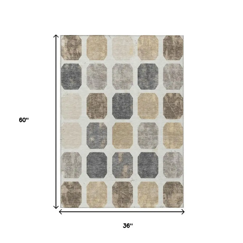 Homeroots 3' X 5' Ivory Beige And Charcoal Geometric Washable Indoor Outdoor Area Rug