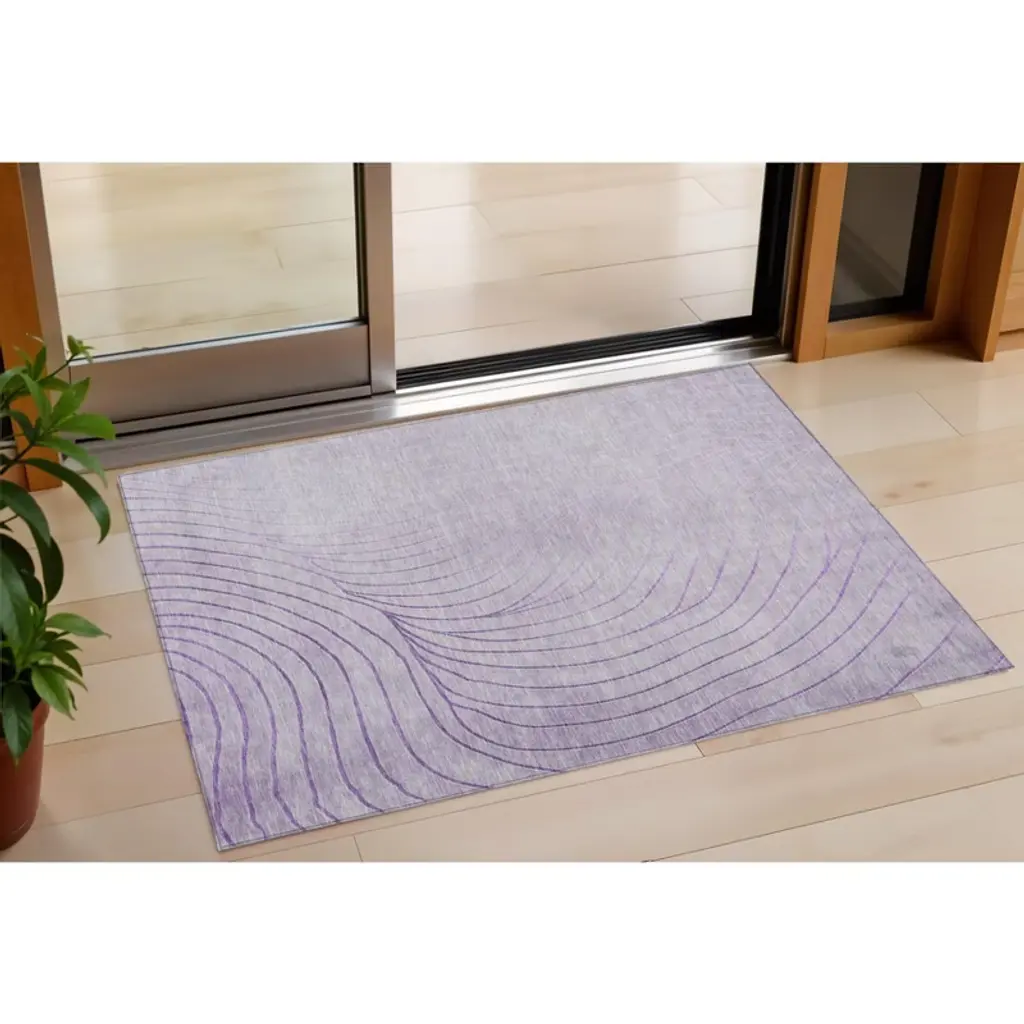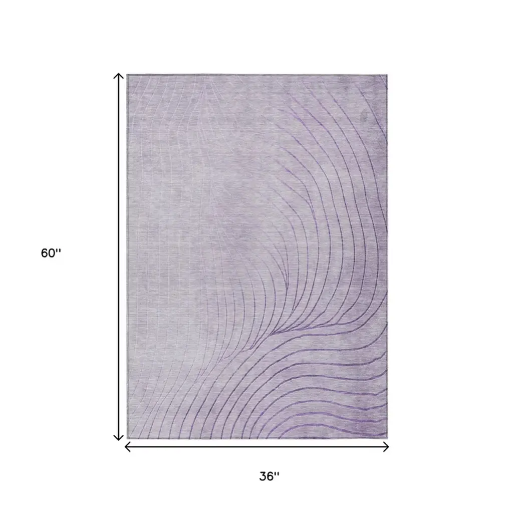 Homeroots 3' X 5' Lavender And Silver Abstract Washable Indoor Outdoor Area Rug